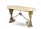 Tavolino da salotto con sostegni ad antichi ostensori in legno intagliato e dor