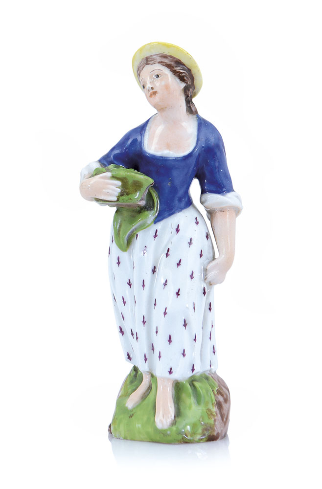 VINOVO FIGURA DI VENDITRICE AMBULANTE IN PORCELLANA, VINOVO, 1780 CA., decoro...