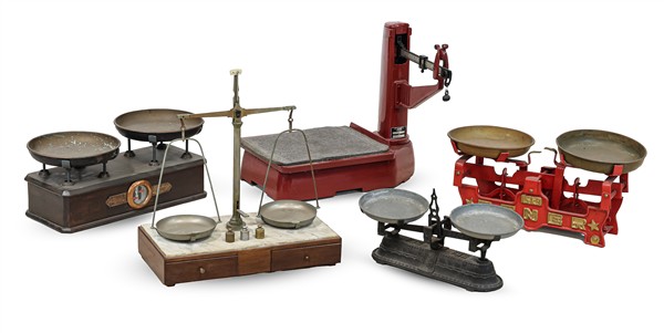 Lotto 1190 | Lotto composto da cinque diverse bilance di materiali differenti (difetti)