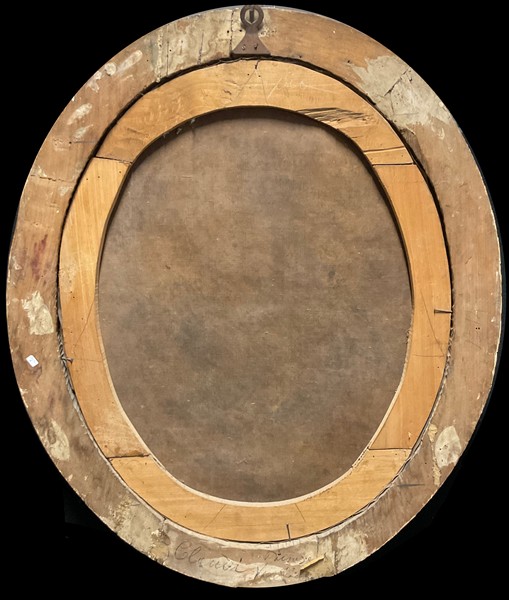 Ignoto "Paesaggio con figure" olio su tela ovale (cm 74x59) in cornice antica