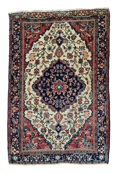 Tappeto Sarouk, Persia, fine secolo XIX. Decoro con medaglione romboidale con g