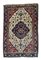 Tappeto Sarouk, Persia, fine secolo XIX. Decoro con medaglione romboidale con grandi puntali su fondo bianco cosparso di rami fioriti. Bordura a meandro su fondo blu notte (cm 143x100) (difetti)