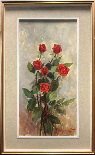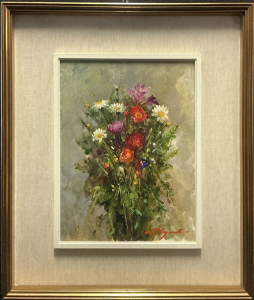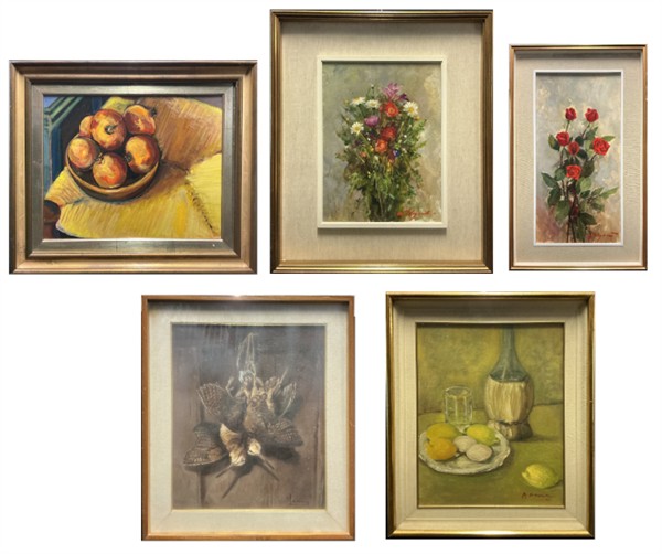 Lotto composto da quattro oli su tela e uno su cartone telato, raffiguranti fiori e nature morte, di autori e misure diverse (misura max cm 59x48) quattro opere firmate