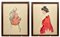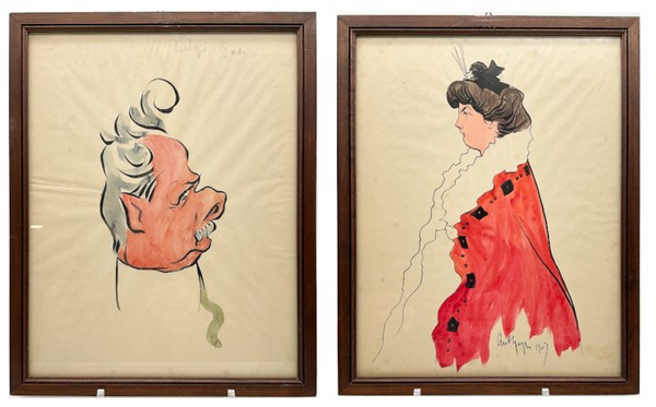 Coppia di tecniche miste su carta raffiguranti un ritratto virile e uno femminile (cm 29x23)