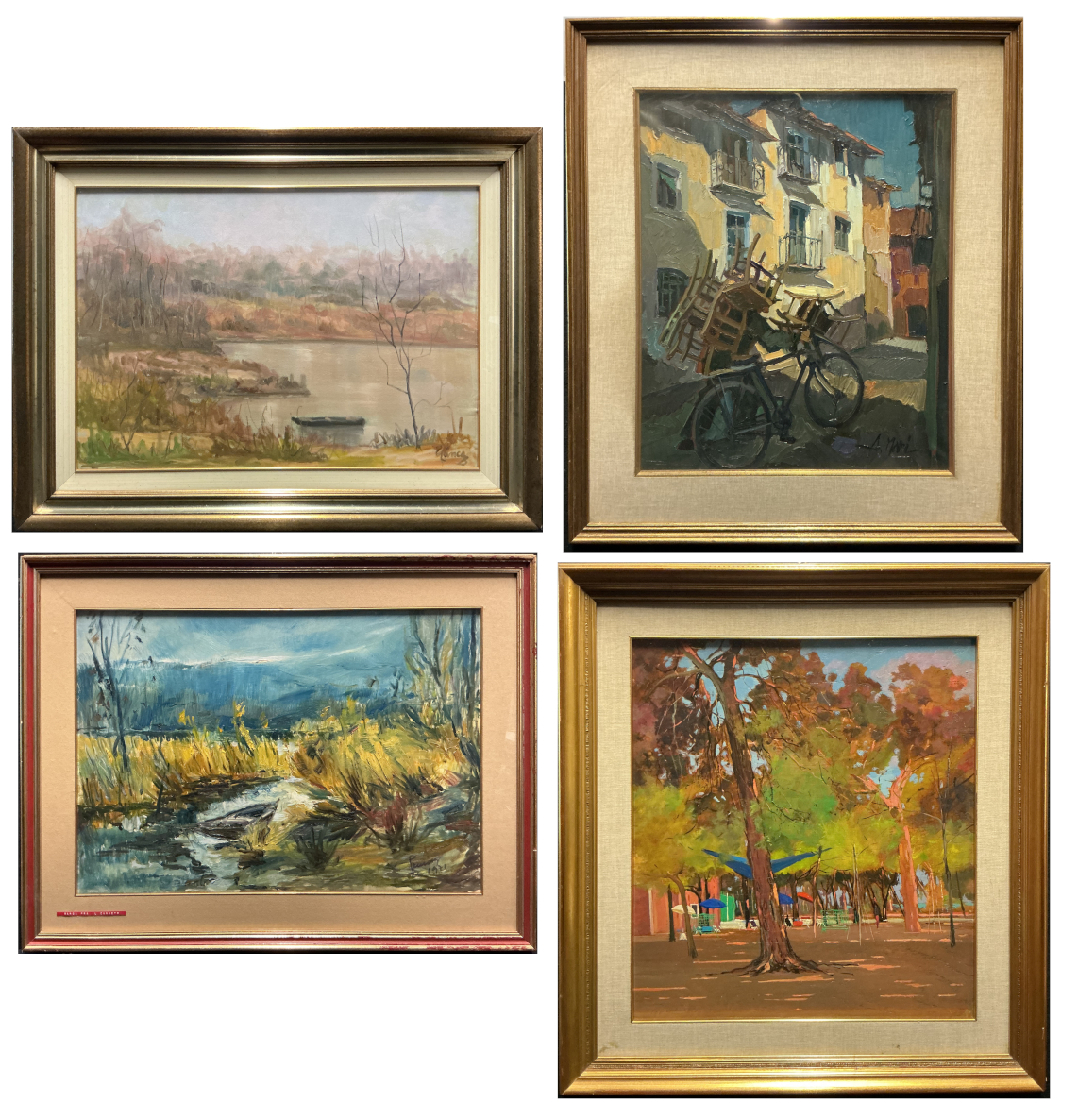 Lotto composto da quattro oli su tela e due su compensato raffiguranti paesaggi