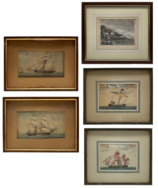 Cartone contenente numerose incisioni, stampe e foto d'epoca di diverso soggetto. In cornici (difetti)