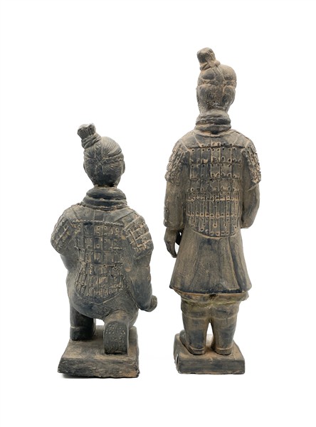 Due sculture di guerrieri di terracotta di Xian in stile antico