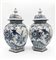 Manifattura di Delft. Coppia di potiche in ceramica dipinta in monocromo blu a