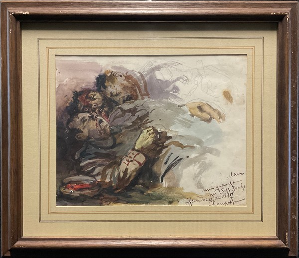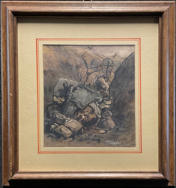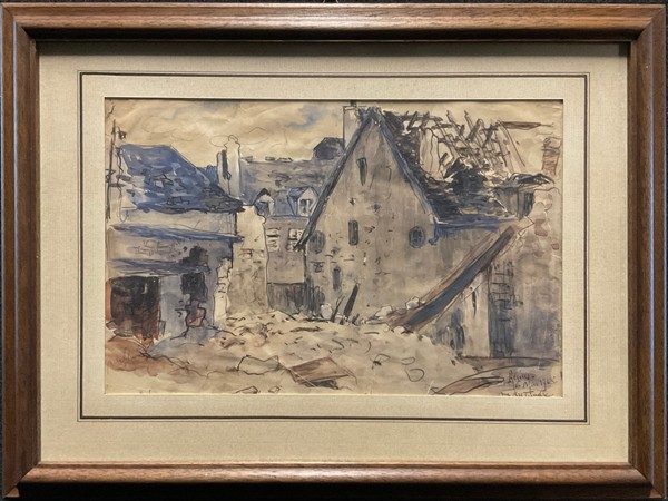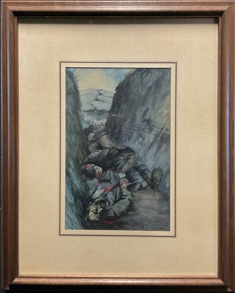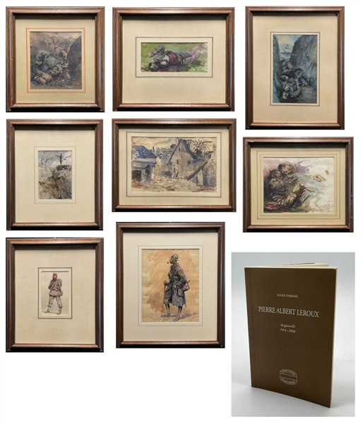 "Lotto composto da otto acquerelli raffiguranti "Scene della Guerra dal Fronte", di diverse misure (cm max 19x30), alcuni dei quali firmati. Accompagnati dal catalogo espositivo"