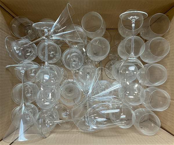 Manifatture diverse, secolo XX. Lotto composto da numerosi bicchieri in cristallo di diverso formato (h max cm 24,5) (lievi difetti)