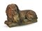 Scultura da giardino in terracotta raffigurante leone assiso (cm 63x40x24 circa) (difetti)