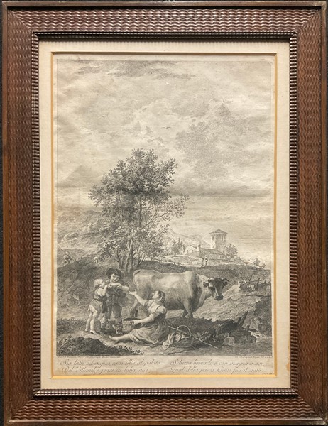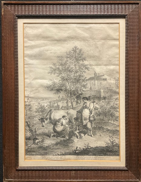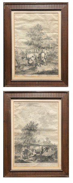 Coppia di acqueforti di Giuseppe Wagner da Francesco Zuccarelli raffiguranti "Scene bucoliche con armenti"
