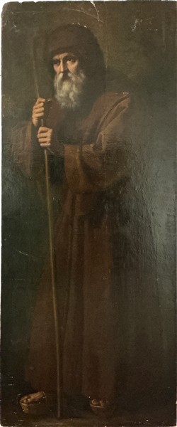 Maestro del secolo XVII "Santo frate" olio su tavola parchettata (cm 119,5x49,