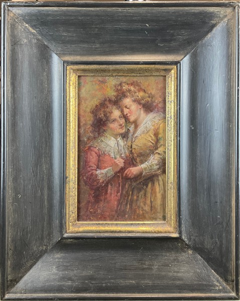 Nazzareno Sidoli "Confidenze" olio su carta (cm 24x15) in cornice (difetti)