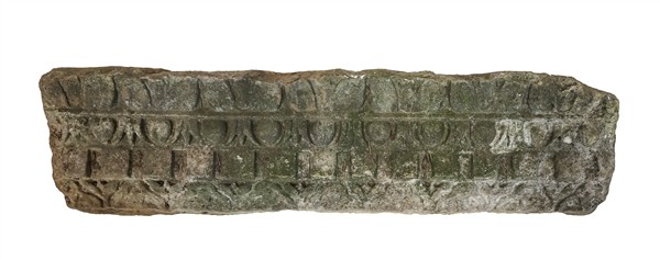 Lotto composto da un antico fregio architettonico in marmo scolpito a ovoli e m