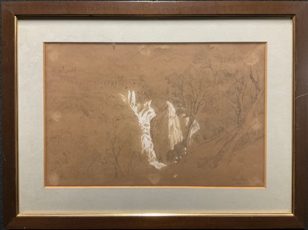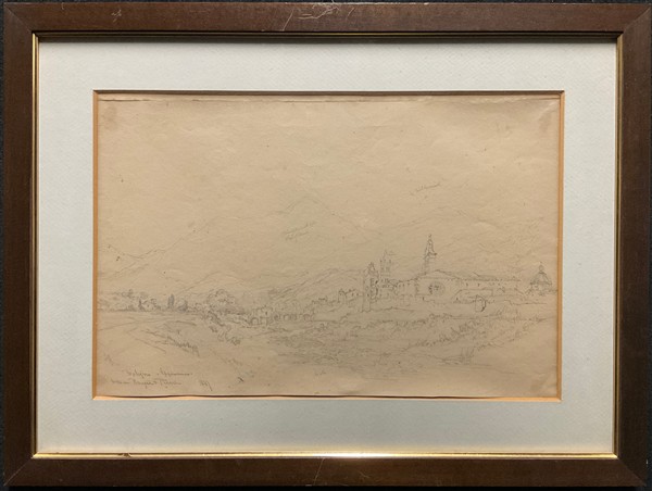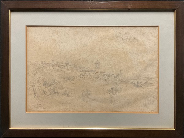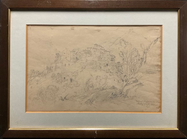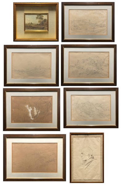 Lotto composto da sei scorci del Centro Italia di artista inglese del Grand Tour datati 1847 uniti a un disegno a china e un Paesaggio ad acquerello di diversi autori e misure