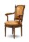 Poltrona girevole in stile Luigi XVI in legno intagliato con braccioli terminan
