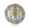 GRANDE PIATTO IN MAIOLICA, LATERZA, FINE XVII SECOLO, decoro policromo centrato da figura e bordo con frutti e foglie.