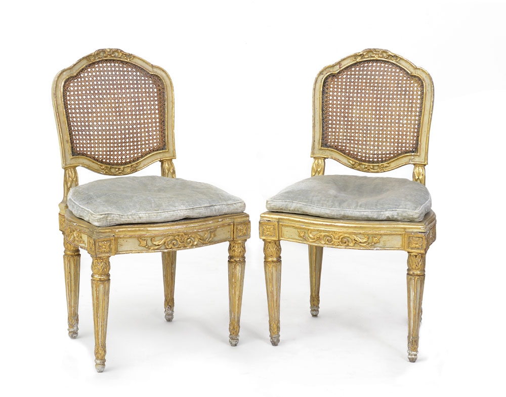MOBILE DEL XVIII SECOLO COPPIA DI SEDIE LUIGI XVI IN LEGNO SCOLPITO E DORATO,...