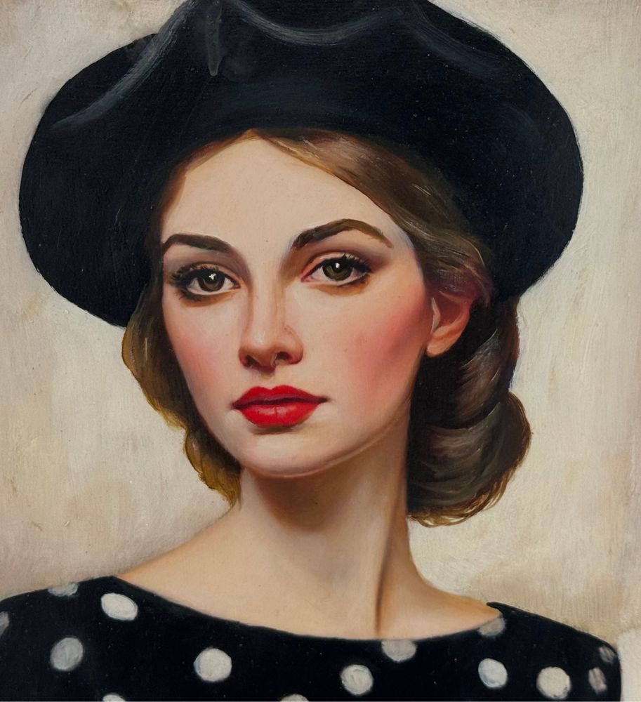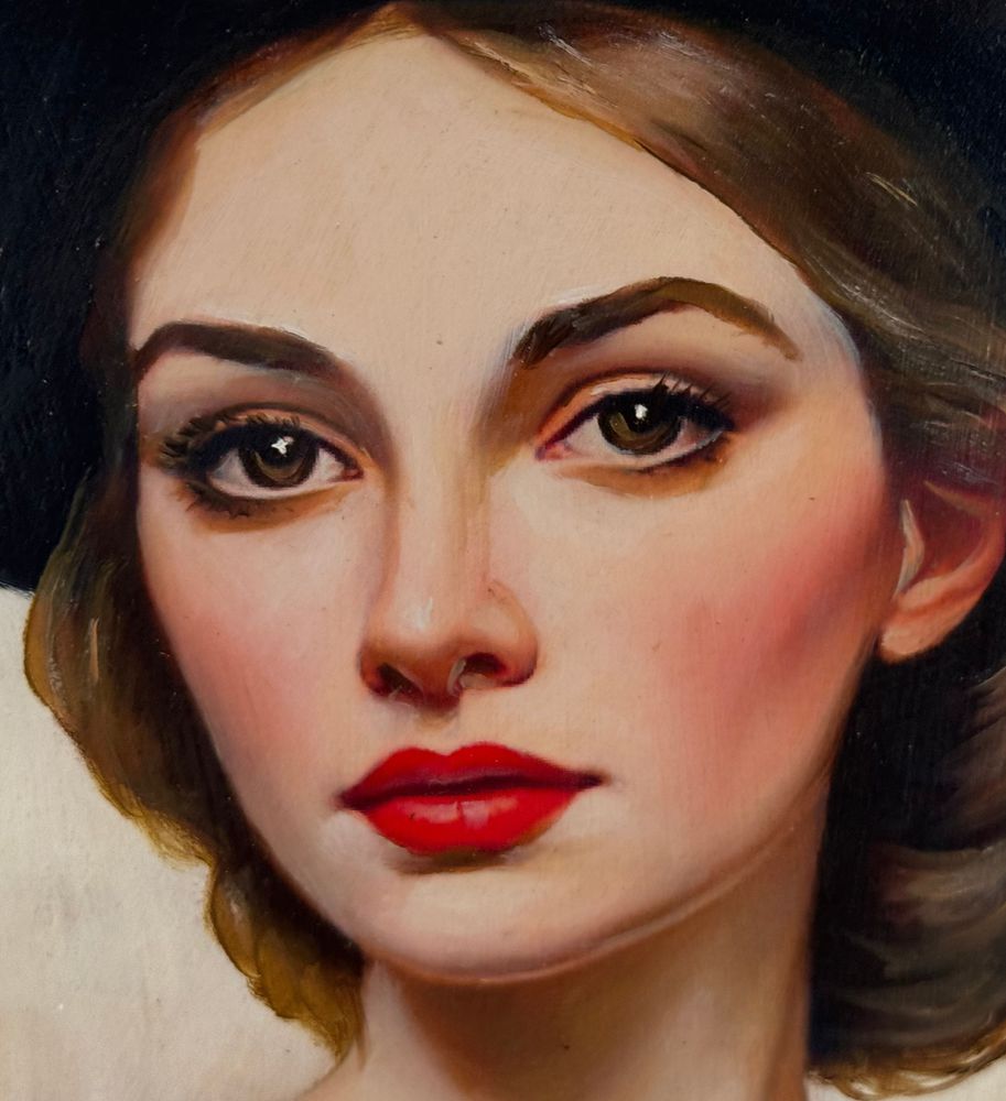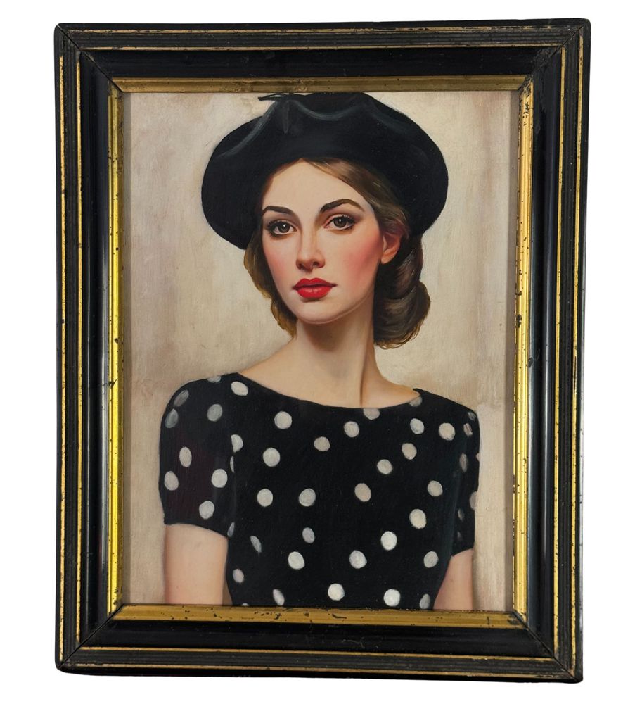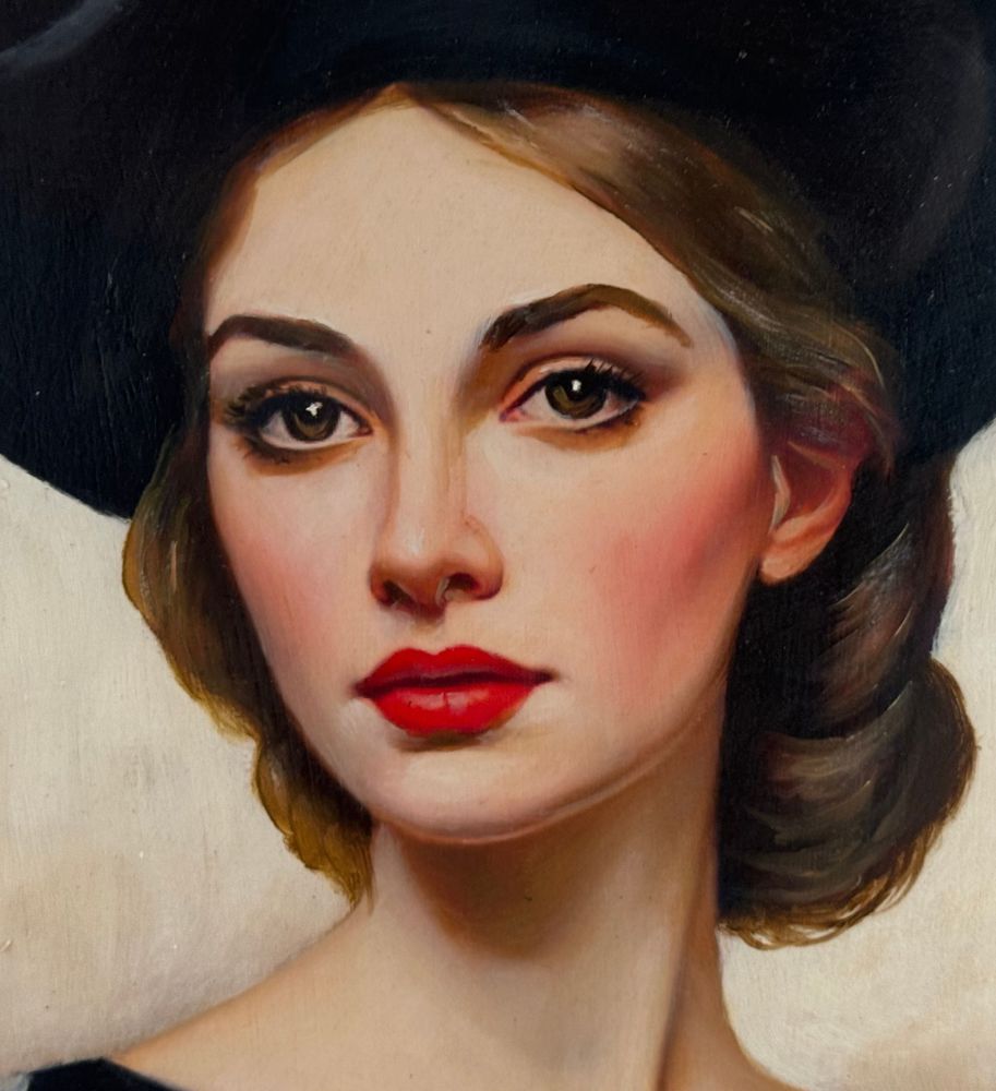 ANONIMO - Dipinto olio su cartoncino telato, periodo XX secolo, scuola Italiana, raffigurante Ritratto di donna con cappello. Dimensioni compreso cornice: 37x46 cm. Dimensioni interno cornice: 38x30 cm. Artista anonimo. Opera in buone condizioni.