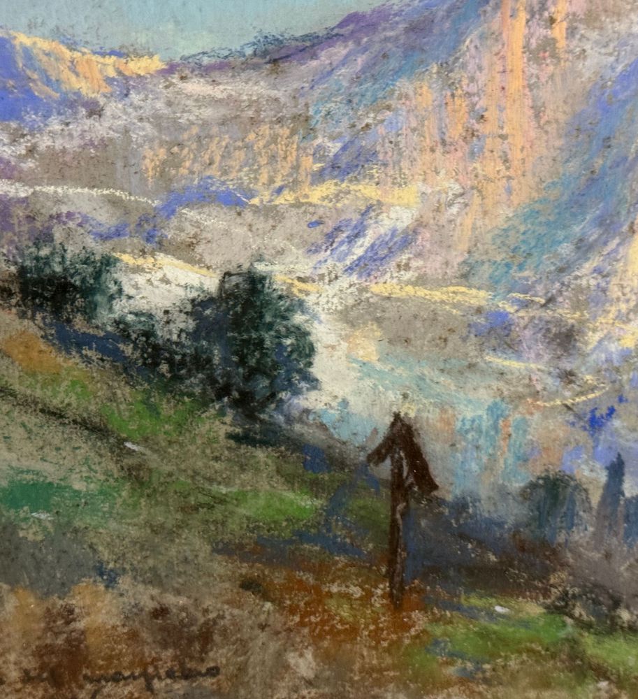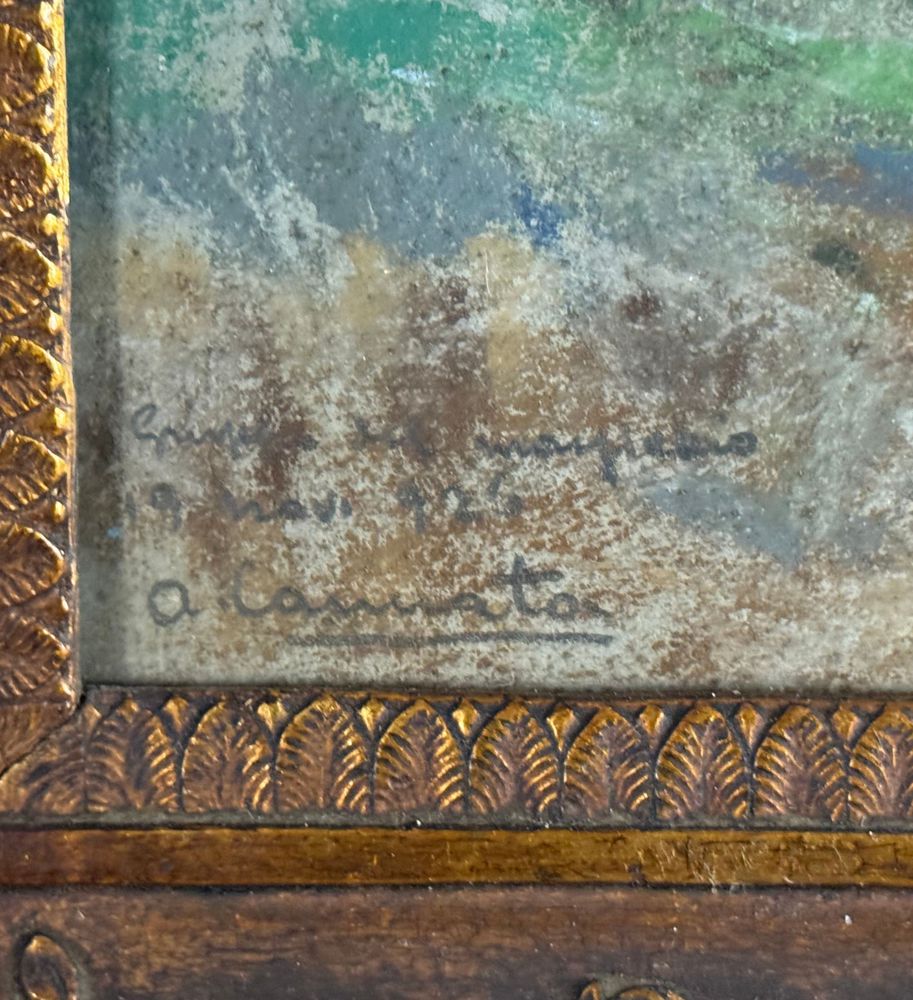 Antonio Cannata - Dipinto tecnica mista su cartoncino, periodo XX secolo, scuola Italiana, raffigurante Paesaggio. Dimensioni compreso cornice: 43x37 cm. Dimensioni interno cornice: 33x27 cm. Firmato in basso a sinistra Antonio Cannata. Opera in buone condizioni.