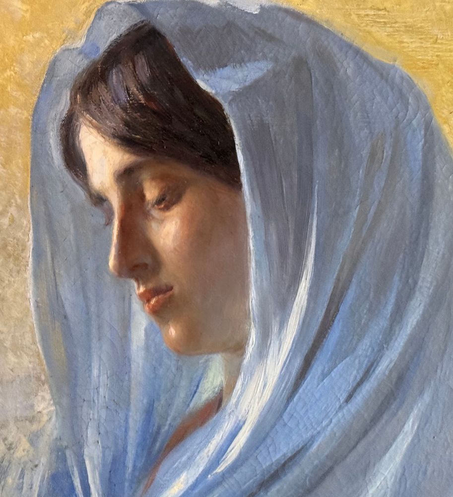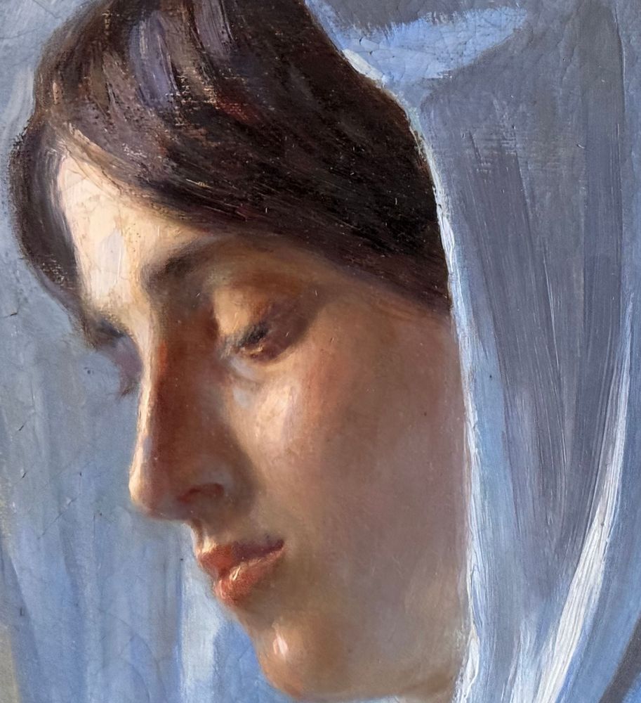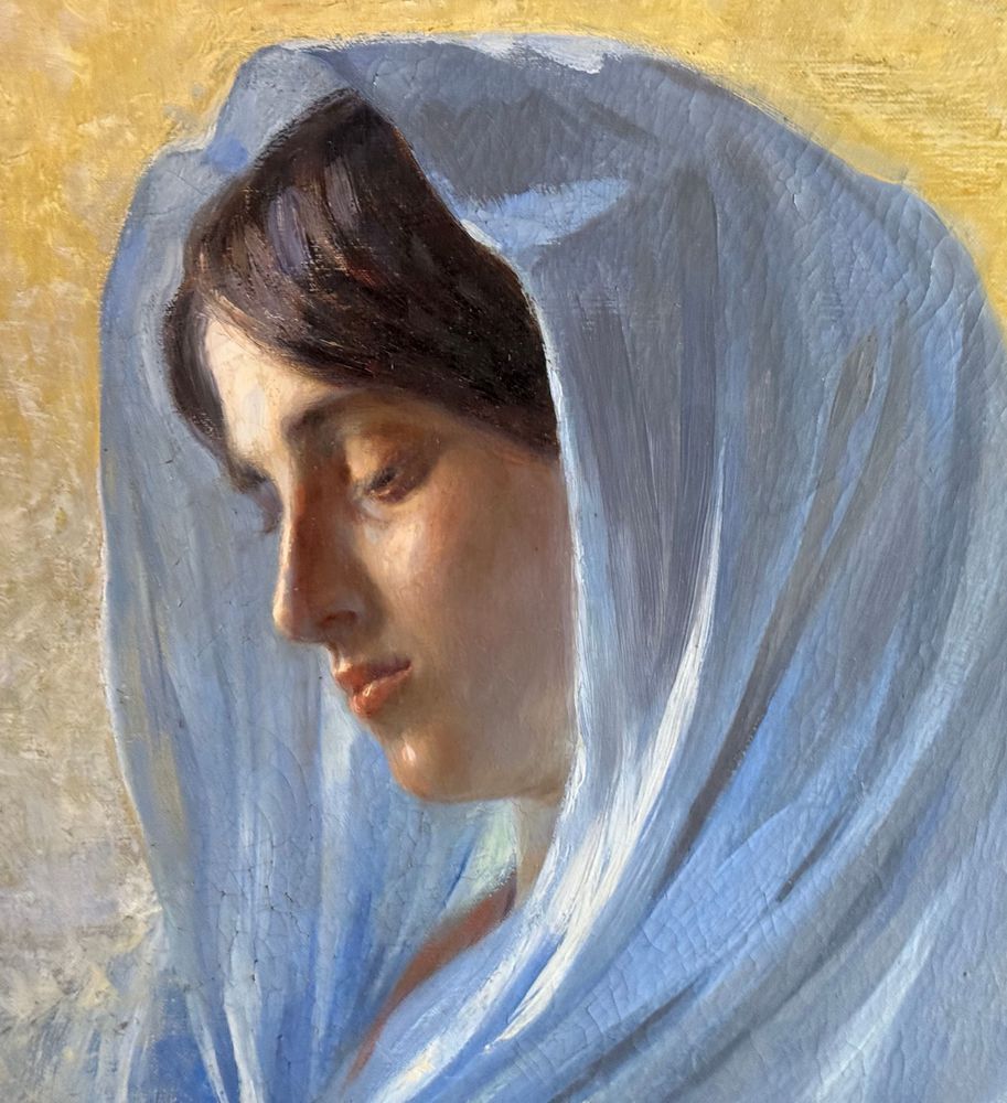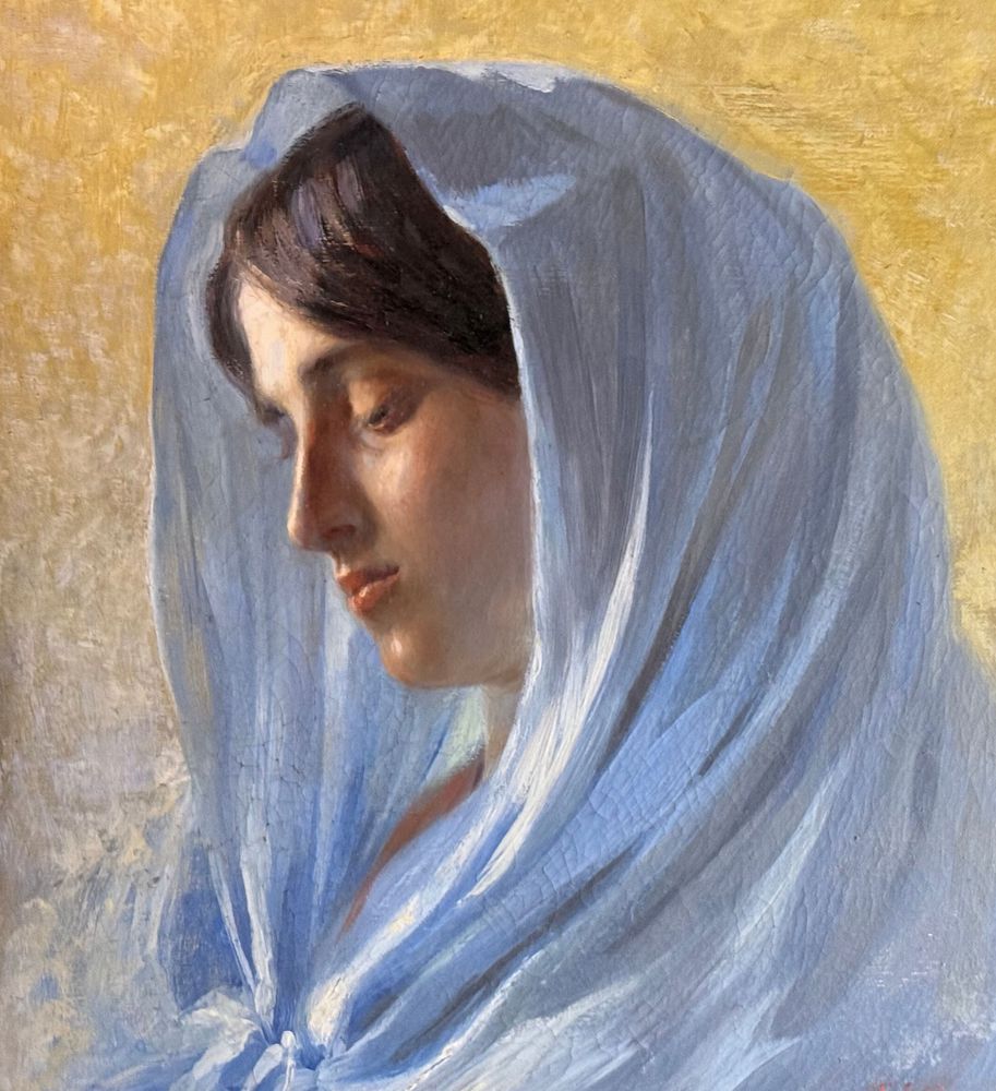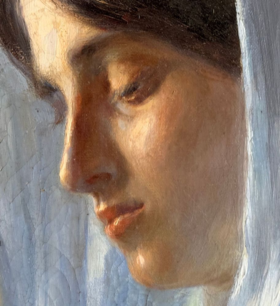 Paolo Emilio Passaro - Dipinto olio su tela, periodo 1912, scuola Italiana, raffigurante Volto di donna con velo. Dimensioni compreso cornice: 58x61 cm. Dimensioni interno cornice: 43x46 cm. Firmato e datato in basso a destra Paolo Emilio Passaro 1912. Opera in buone condizioni con lievi segni di vissuto come da foto allegate.