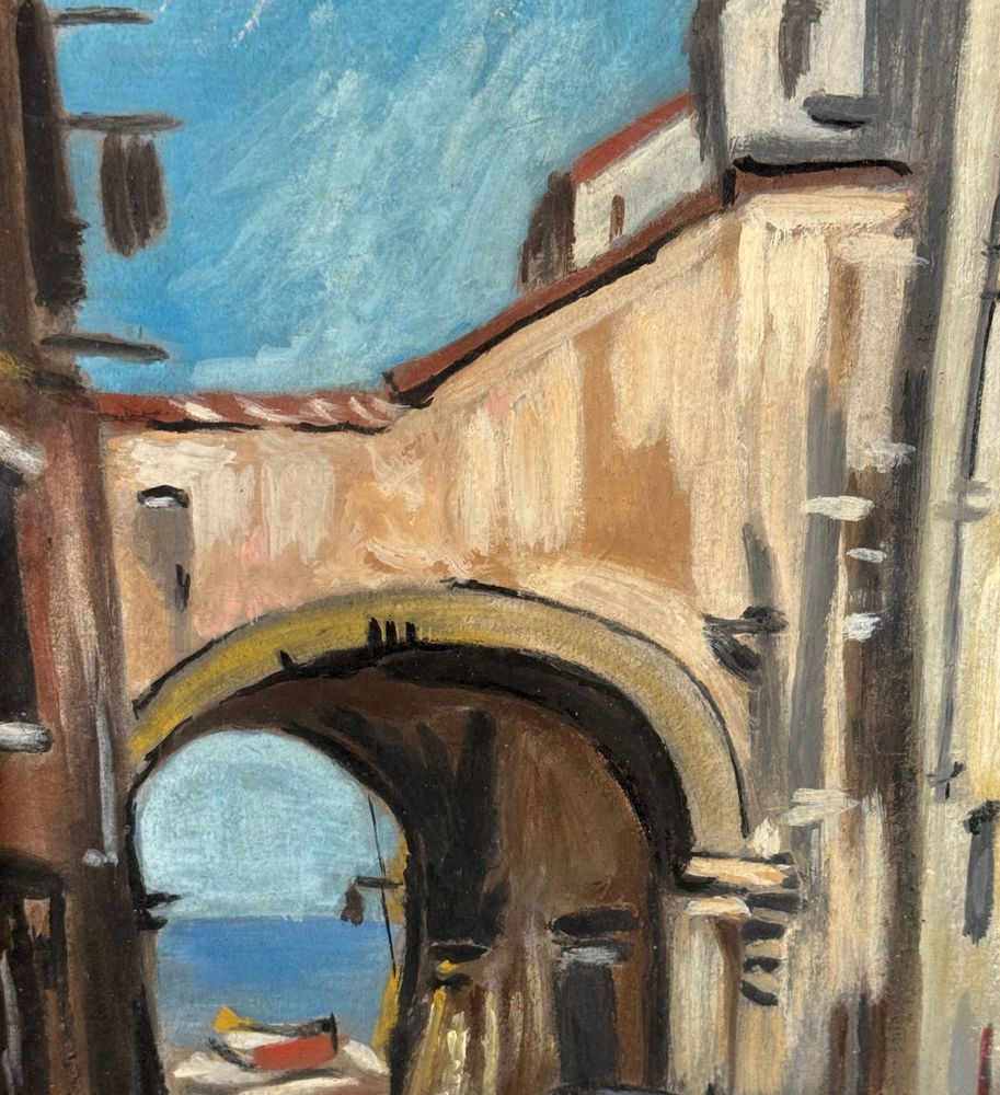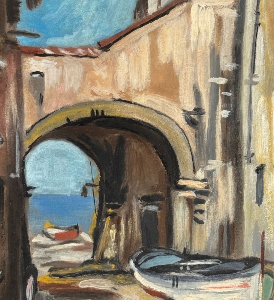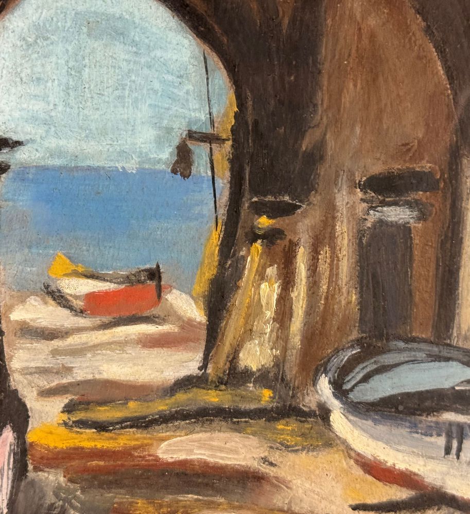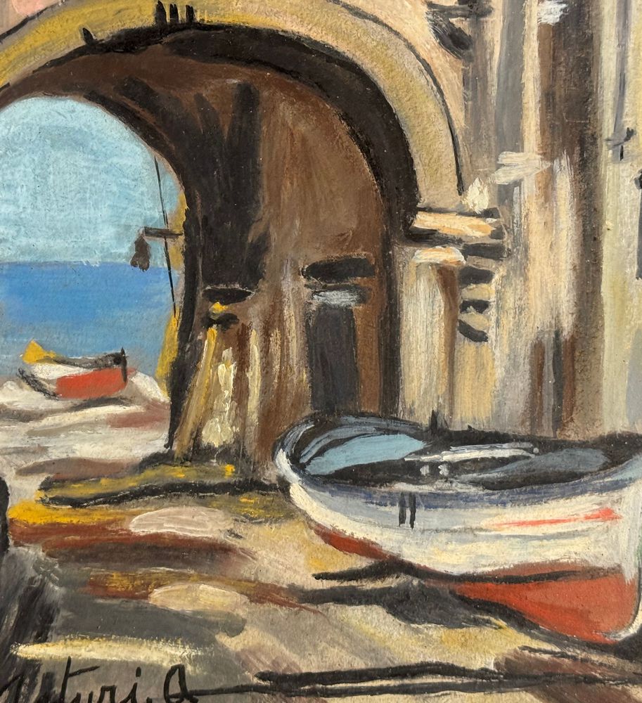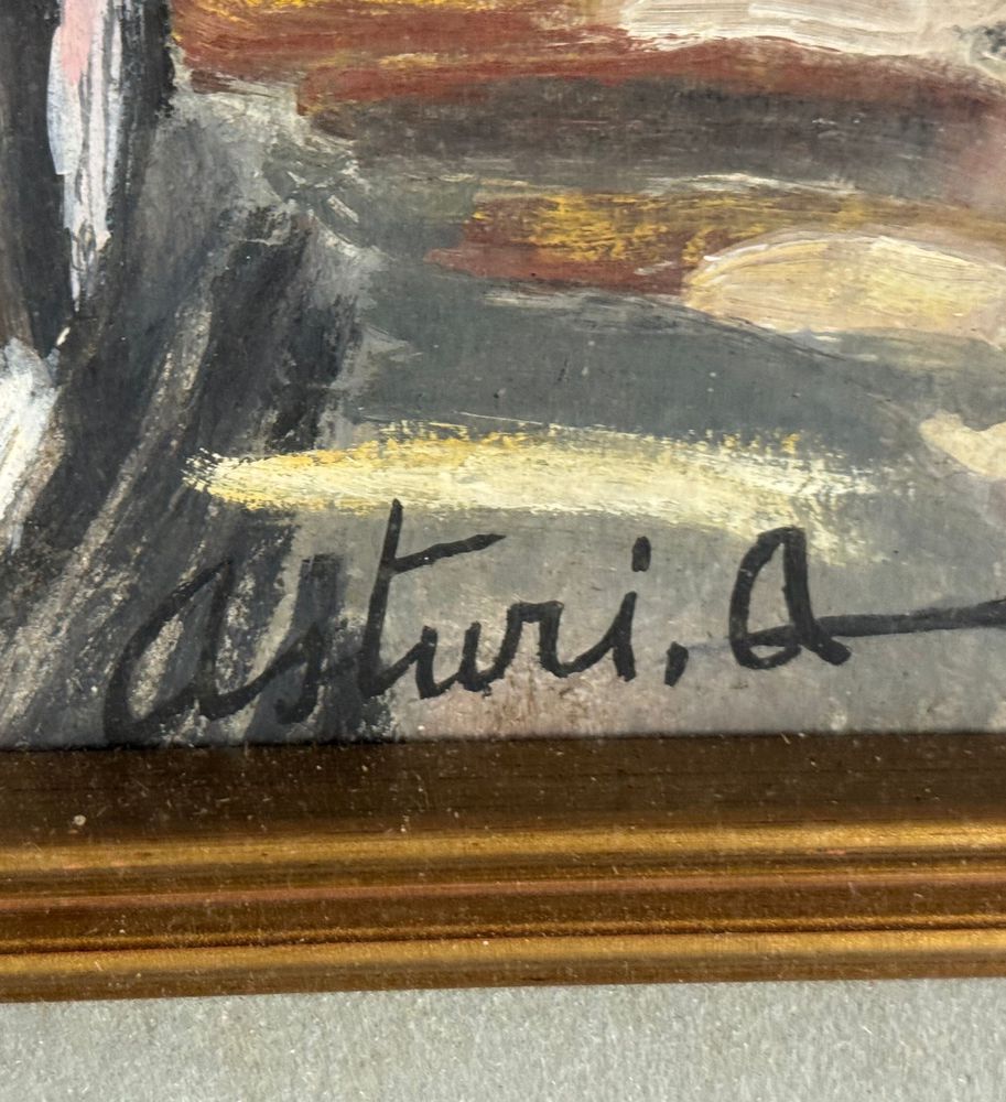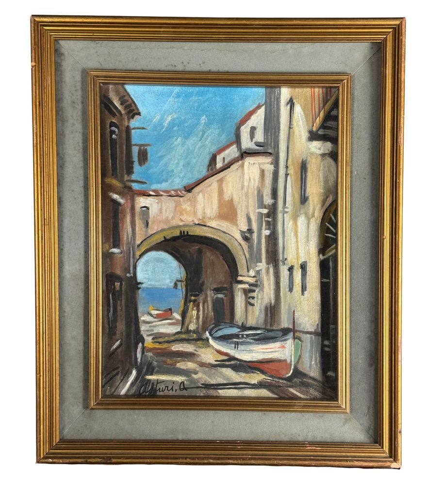 ANTONIO ASTURI - Dipinto olio su pannello, periodo XX secolo, scuola Italiana, raffigurante Scorcio di marina con barche a secco. Dimensioni compreso cornice: 44x54 cm. Dimensioni interno cornice: 33x41 cm. Firmato in basso a sinistra Antonio Asturi. Opera in buone condizioni.
