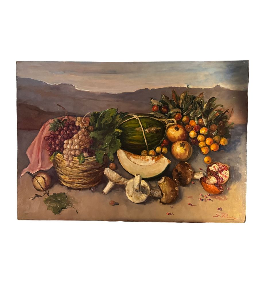 Giovanni Pane - Dipinto olio su pannello, periodo XX secolo, scuola Italiana, raffigurante Natura morta. Dimensioni: 100x70 cm. Firmato in basso a destra Giovanni Pane. Opera in buone condizioni.
