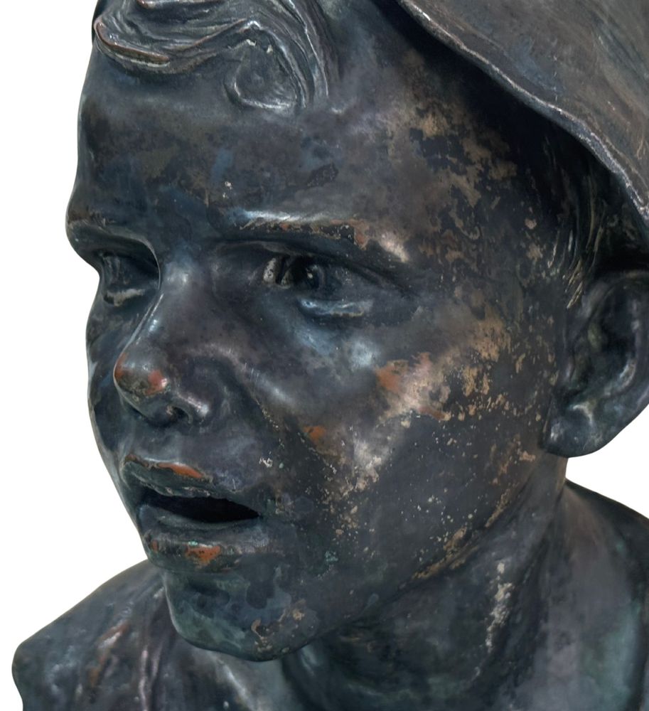 Scultura in Terracotta, raffigurante Scugnizzo napoletano. Dimensioni: h35x25x30 cm. Firmato sul retro da artista non identificato. In buone condizioni.