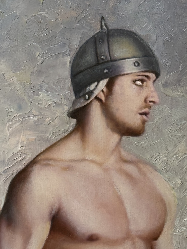 ANONIMO - Dipinto olio su pannello, accademico XX secolo, scuola Italiana raffigurante Ritratto di guerriero con elmetto. Dimensioni compreso cornice: 41x47 cm. Dimensioni interno cornice: 36x43 cm. Da artista anonimo. Opera in buone condizioni.