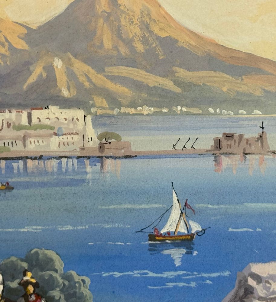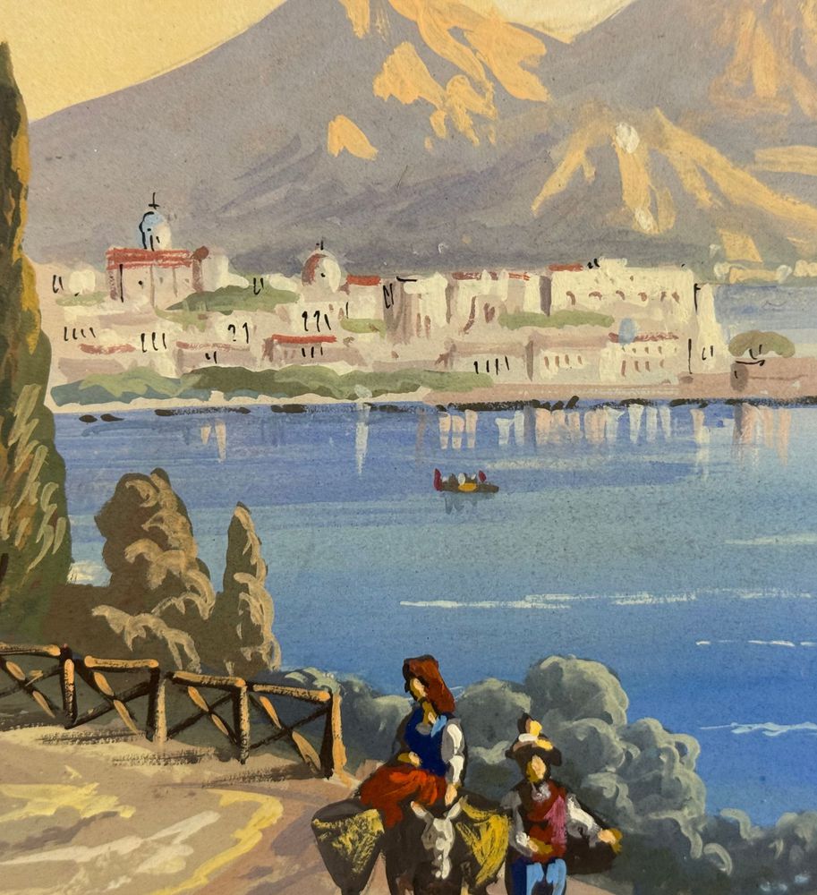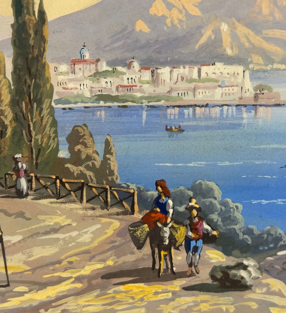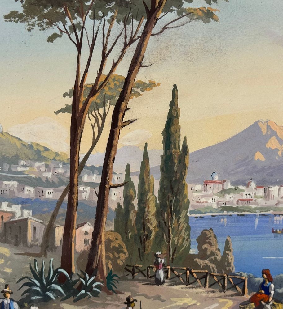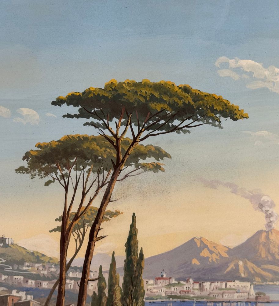 ANONIMO - Dipinto guazzo (tempera su carta), periodo XX secolo, scuola Italiana raffigurante Veduta di Napoli da Posillipo. Dimensioni compreso cornice: 58x52 cm. Dimensioni interno cornice: 41x35 cm. Da artista anonimo. Opera in buone condizioni. Cornice con lievi segni di vissuto come da foto allegate.