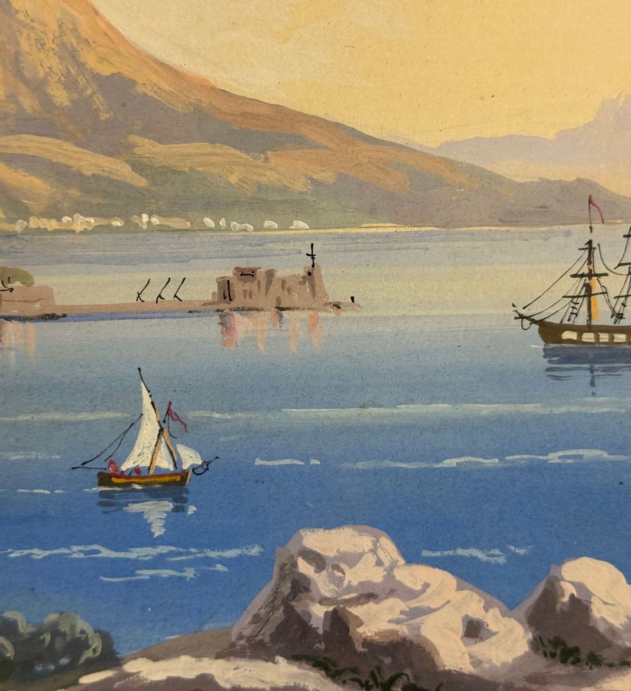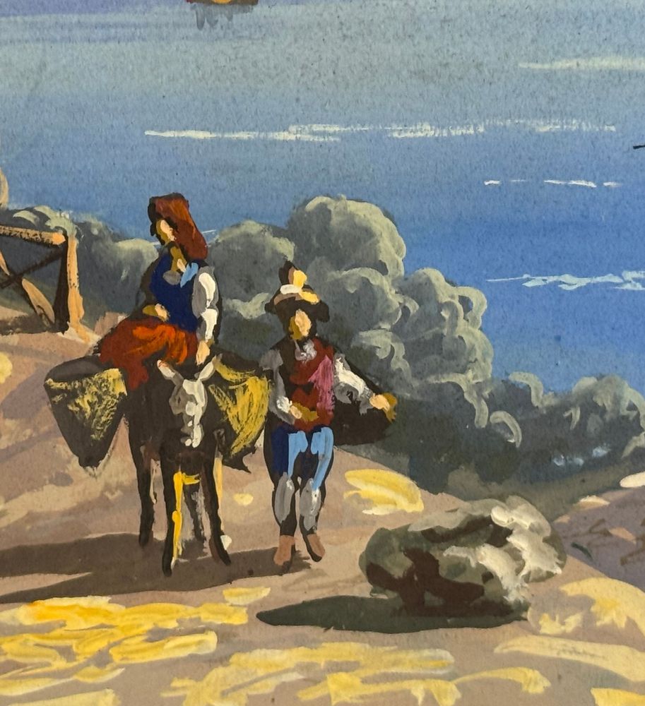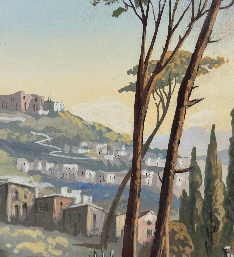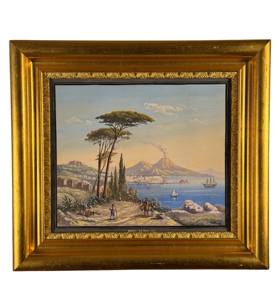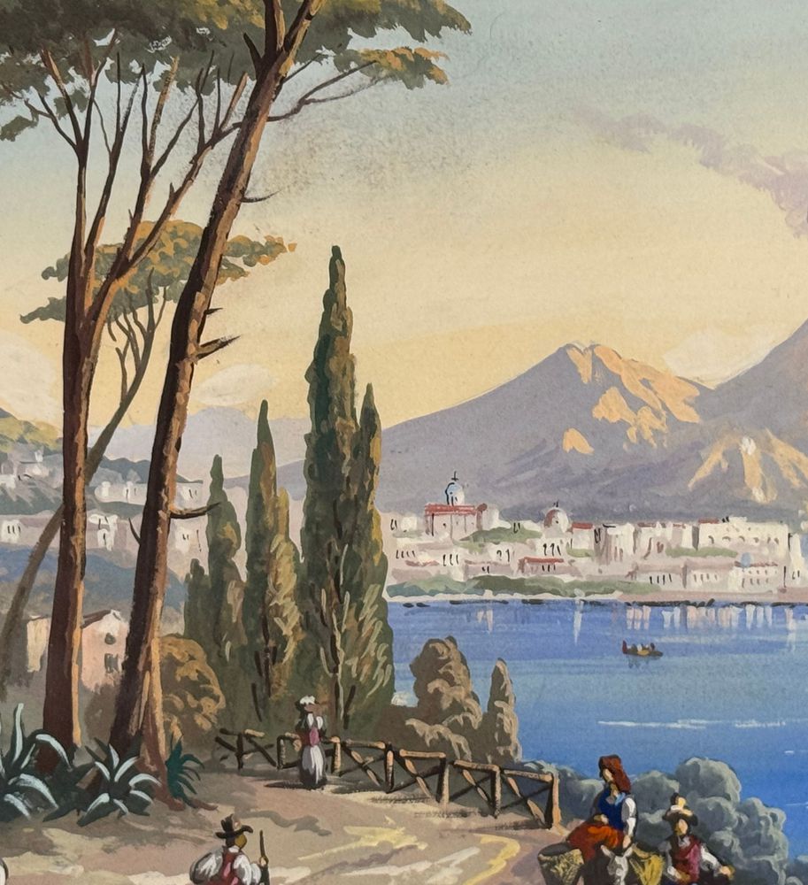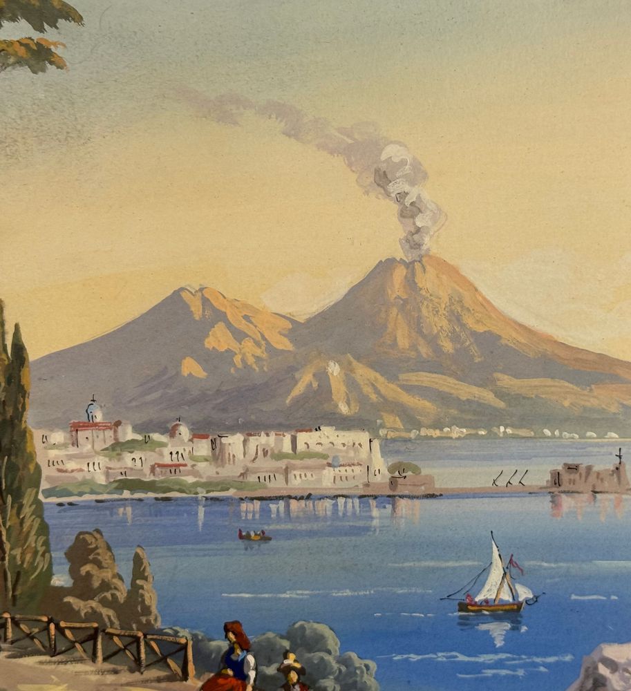 ANONIMO - Dipinto guazzo (tempera su carta), periodo XX secolo, scuola Italiana raffigurante Veduta di Napoli da Posillipo. Dimensioni compreso cornice: 58x52 cm. Dimensioni interno cornice: 41x35 cm. Da artista anonimo. Opera in buone condizioni. Cornice con lievi segni di vissuto come da foto allegate.