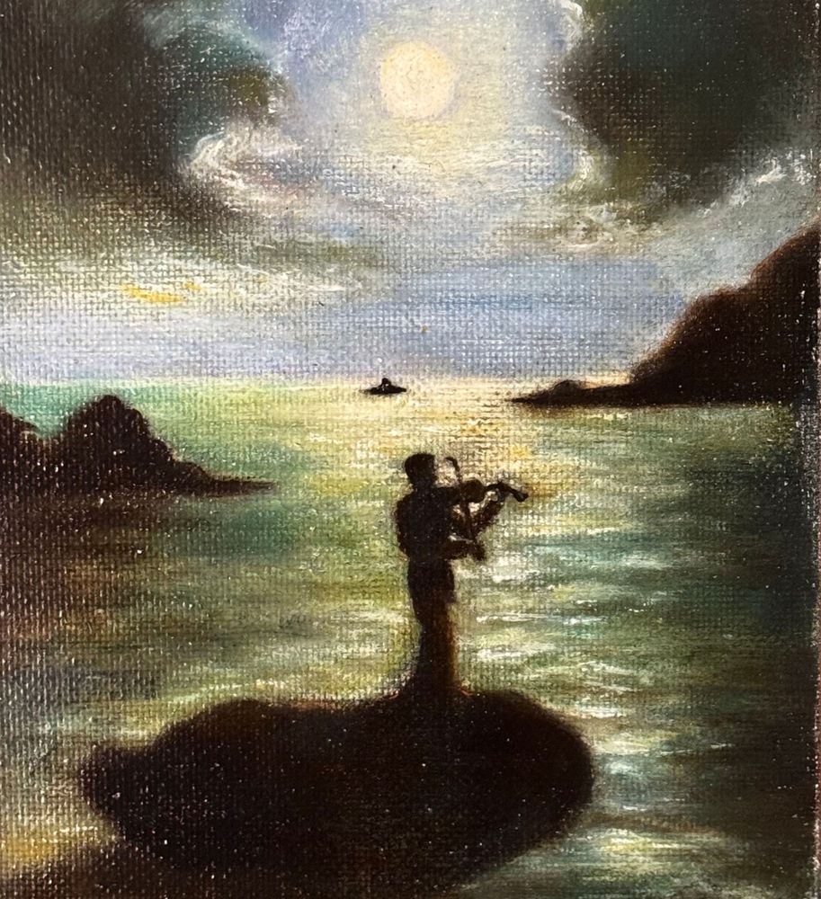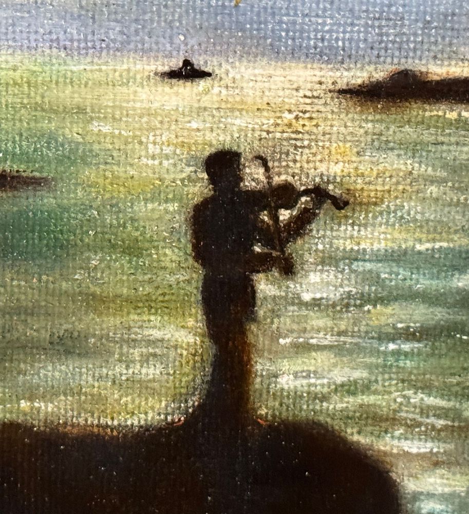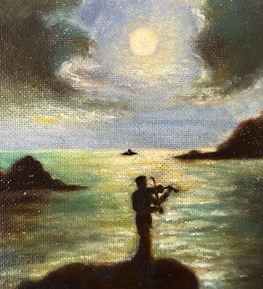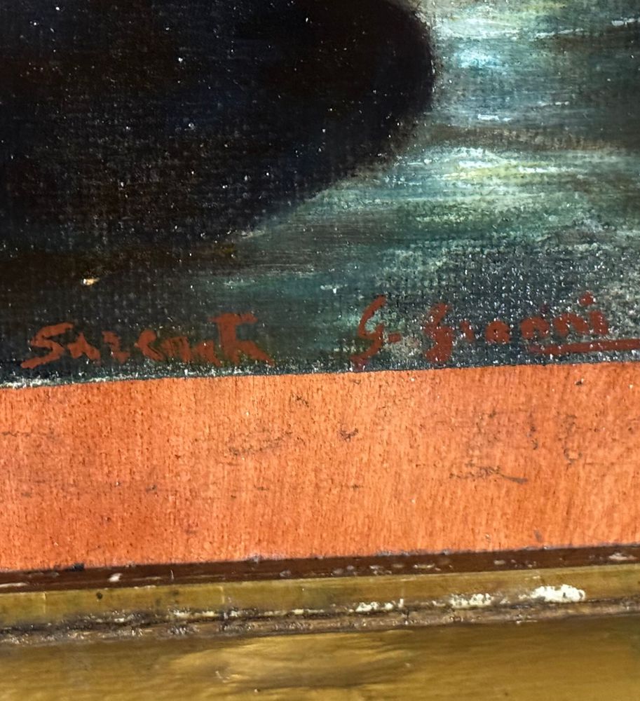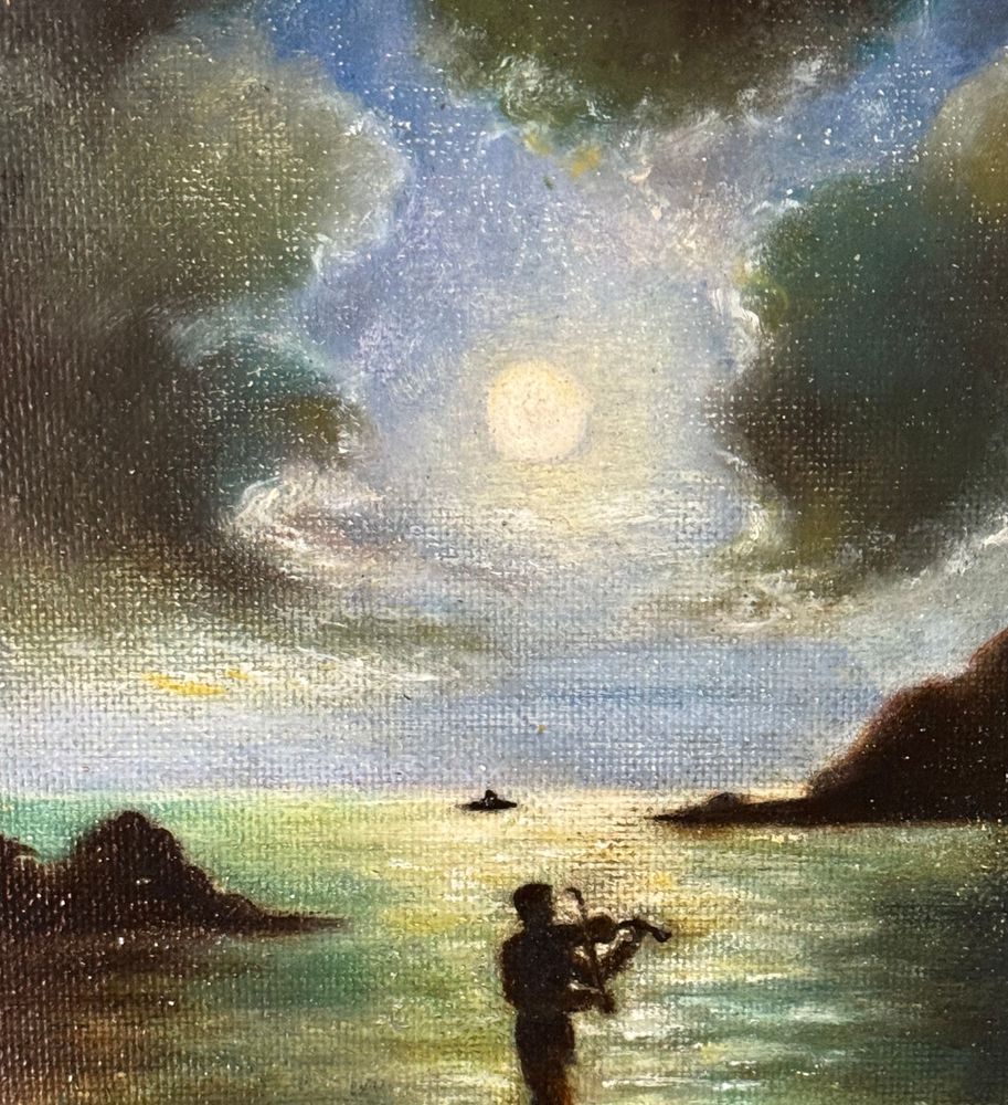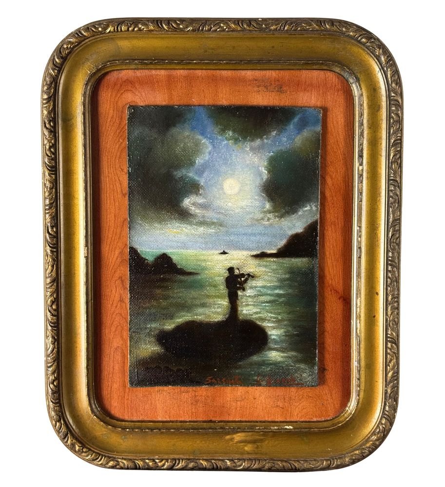 UNIDENTIFIED SIGNATURE - Dipinto olio su pannello, periodo XX secolo, scuola Italiana raffigurante Serenata al chiar di luna. Dimensioni compreso cornice: 38x48 cm. Dimensioni interno cornice: 20x30 cm. Firmato in basso a destra artista non identificato. Opera in buone condizioni.