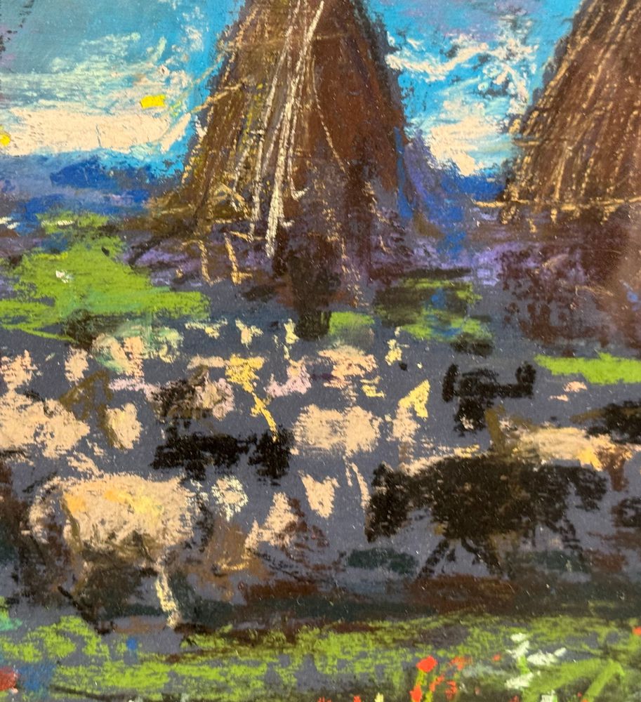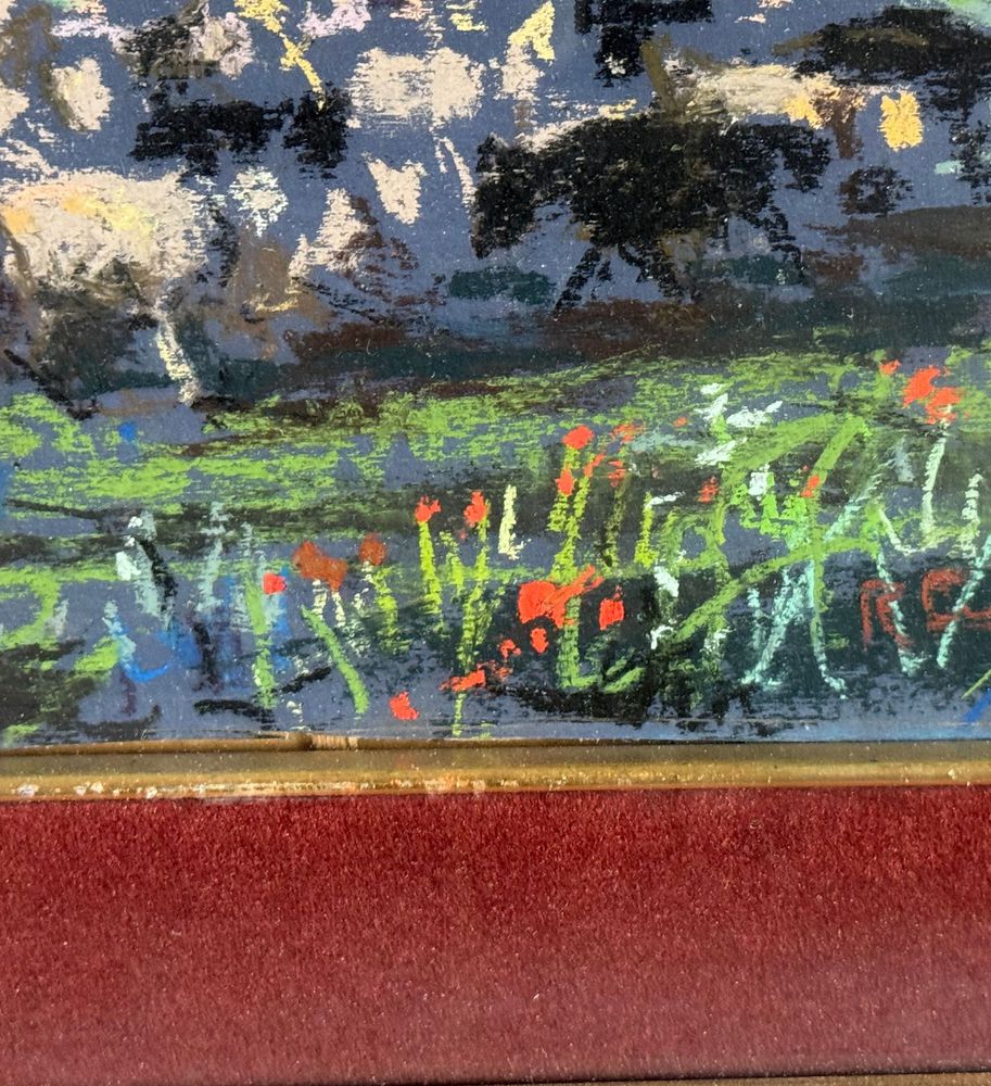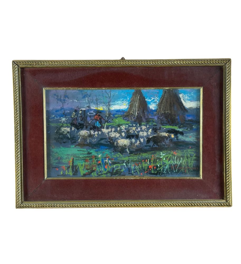 R.CARIGNANI - Dipinto olio e gessetto su tavola, periodo XX secolo scuola Italiana, raffigurante Paesaggio con gregge. Dimensioni compreso cornice: 42x28,5 cm. Dimensioni interno cornice: 30x18 cm. Reca firma in basso a destra R. Carignani. Opera in buone condizioni.