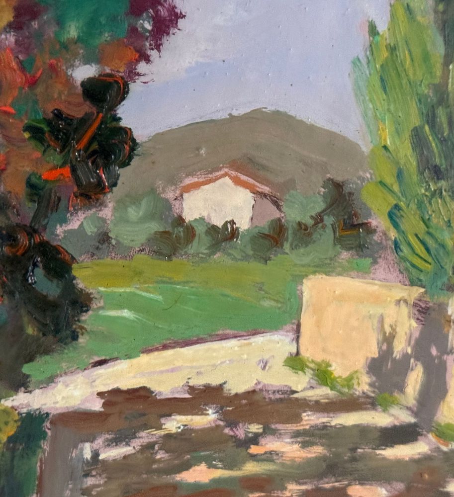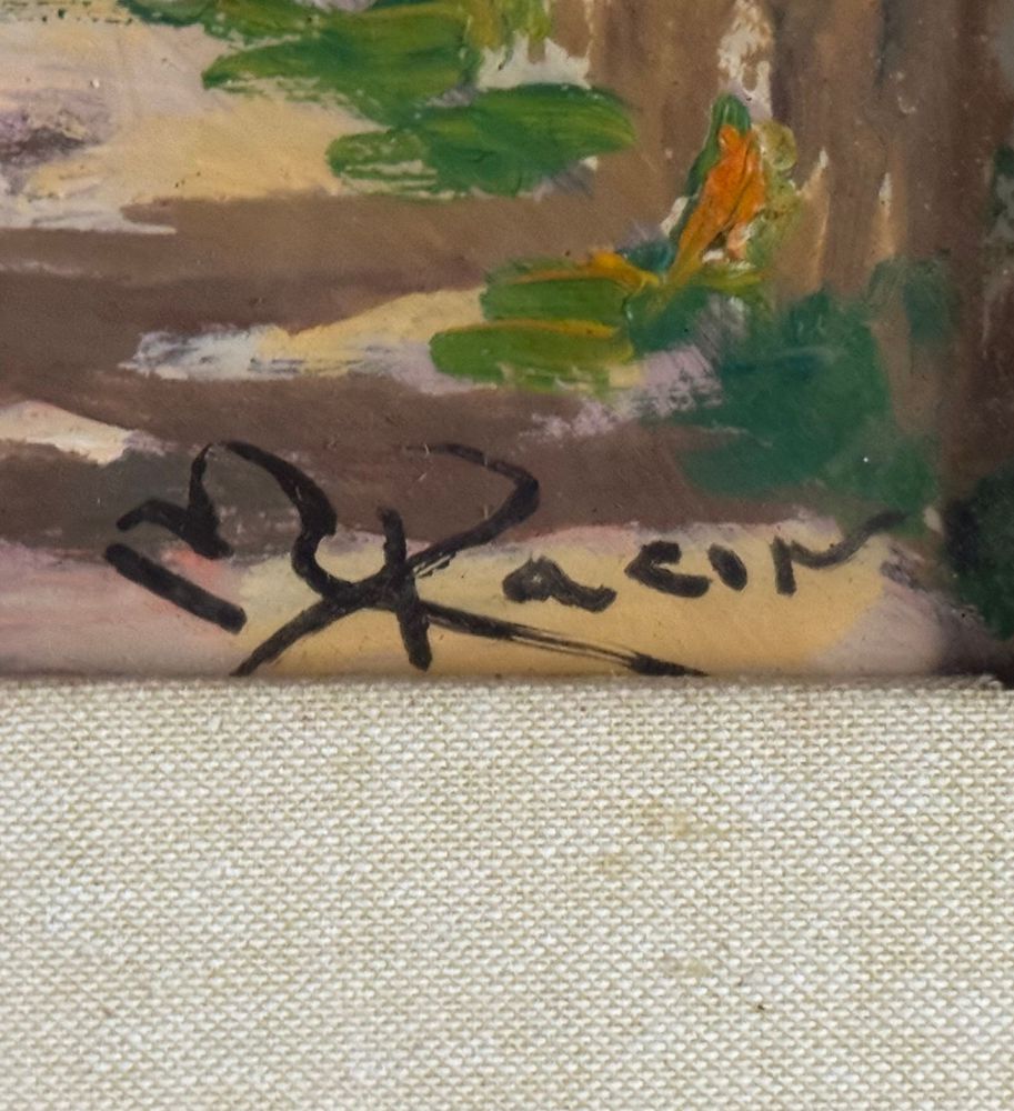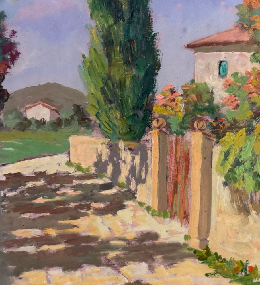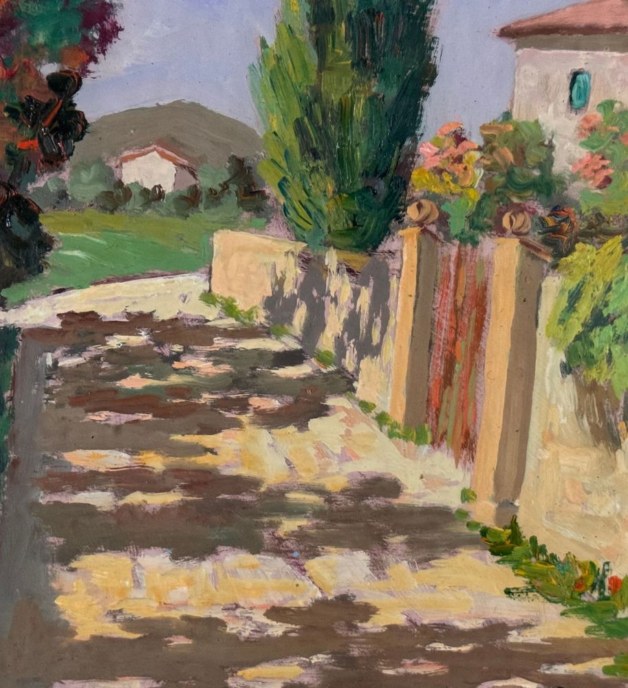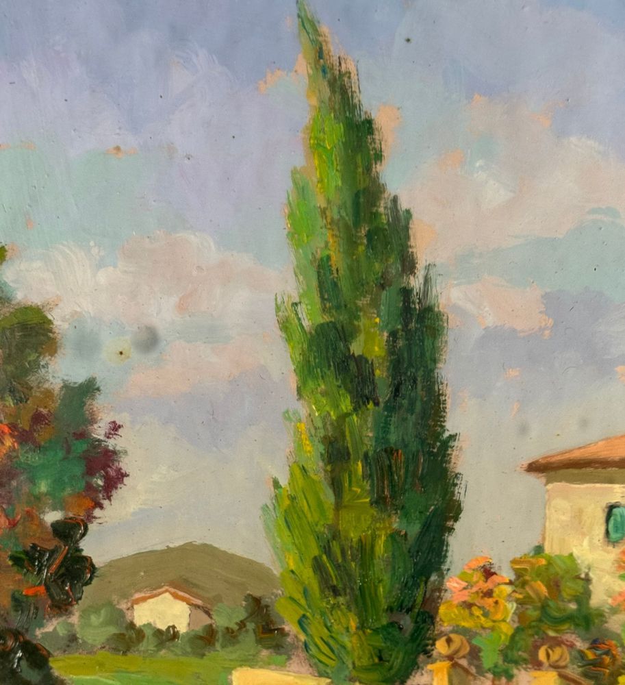Pacini - Dipinto olio su pannello, periodo XX secolo, scuola Italiana raffigurante Stradina di campagna. Dimensioni compreso cornice: 54x63,5 cm. Dimensioni interno cornice: 30x40 cm. Firmato in basso a destra Pacini. Opera in buone condizioni.