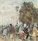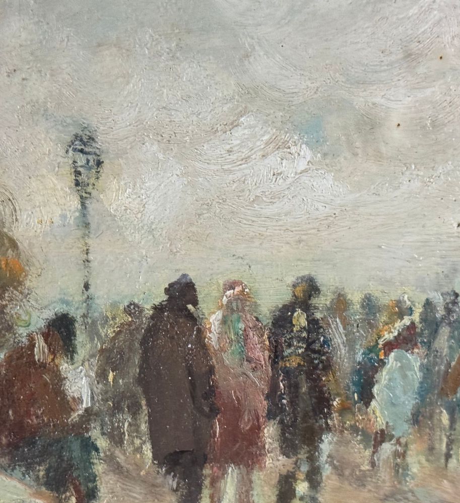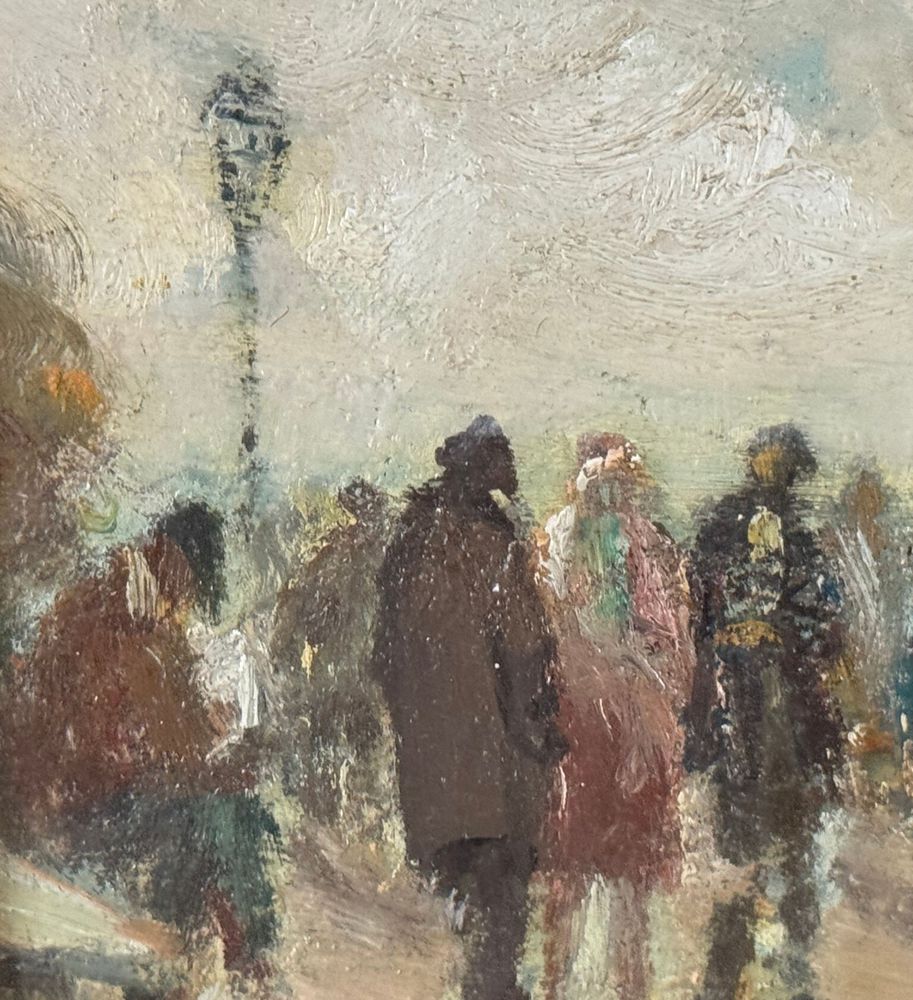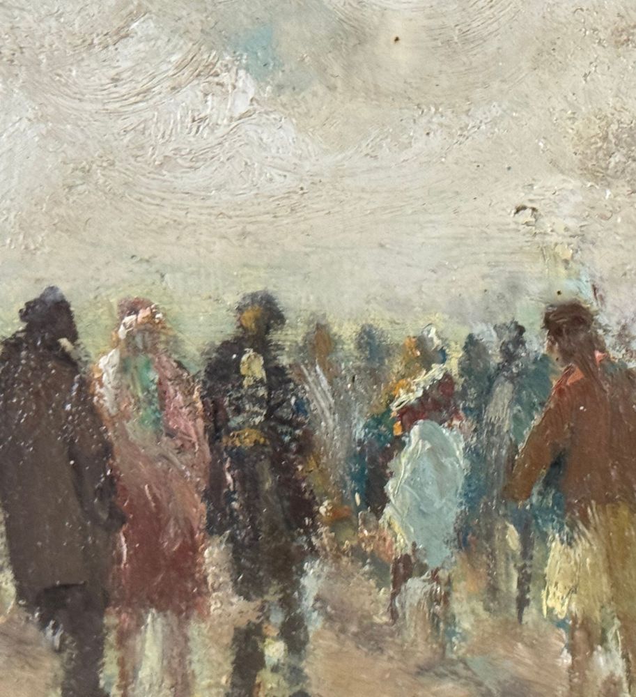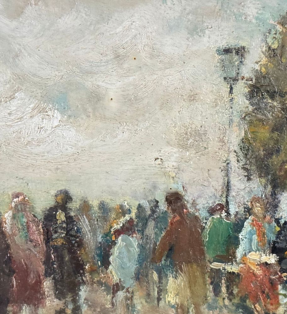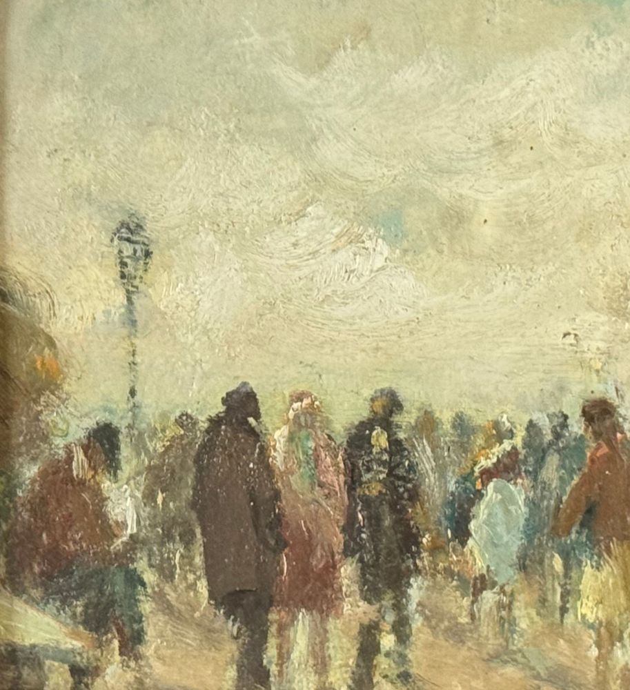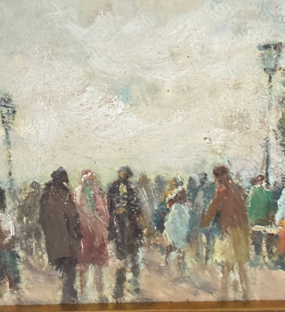 Francesco Filosa - Dipinto olio su tavola, periodo XX secolo, scuola Italiana raffigurante Personaggi al parco. Dimensioni compreso cornice: 43x33 cm. Dimensioni interno cornice: 26x15,5 cm. Firmato in basso a destra Francesco Filosa. Opera in buone condizioni.