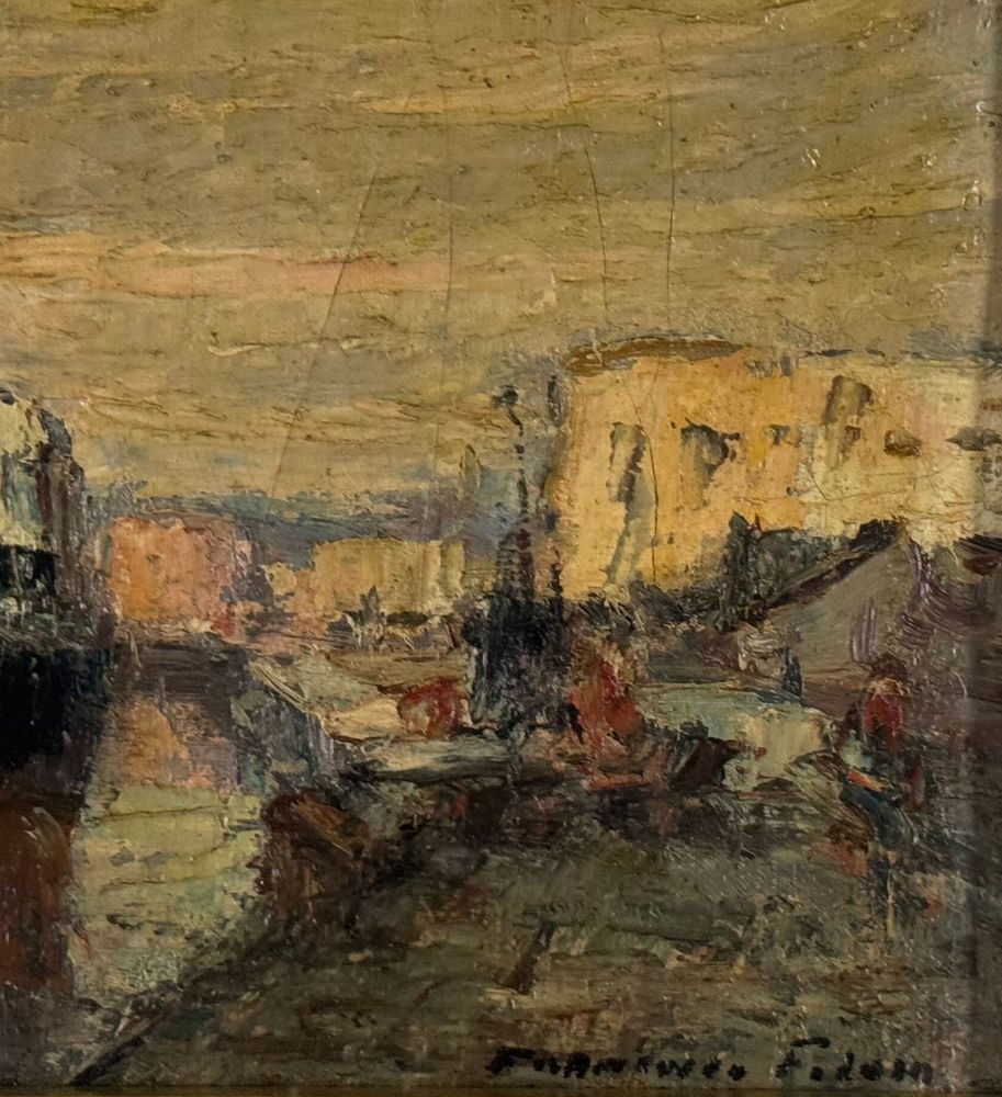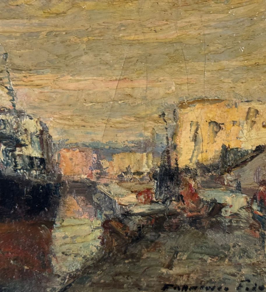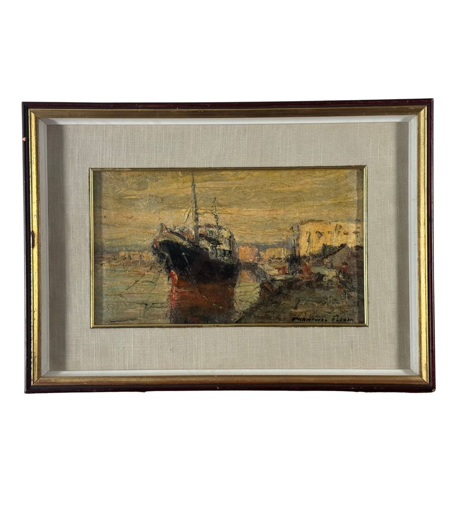 Francesco Filosa - Dipinto olio su tela, periodo XX secolo, scuola Italiana, raffigurante Scorcio di marina con battello. Dimensioni compreso cornice: 44x31 cm. Dimensioni interno cornice: 30x17 cm. Firmato in basso a destra Francesco Filosa. Opera in buone condizioni.