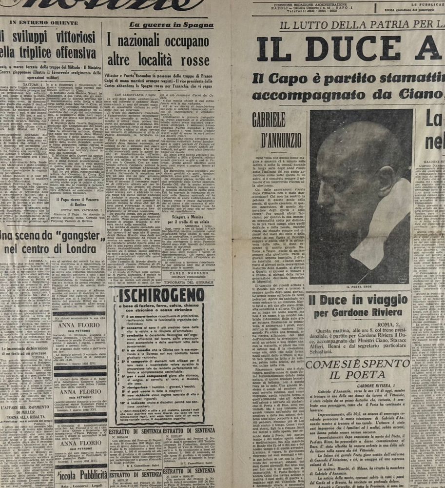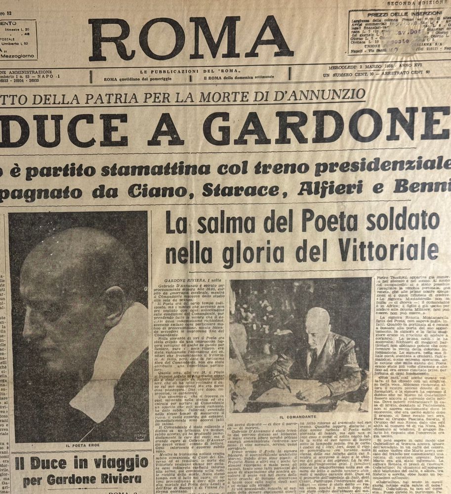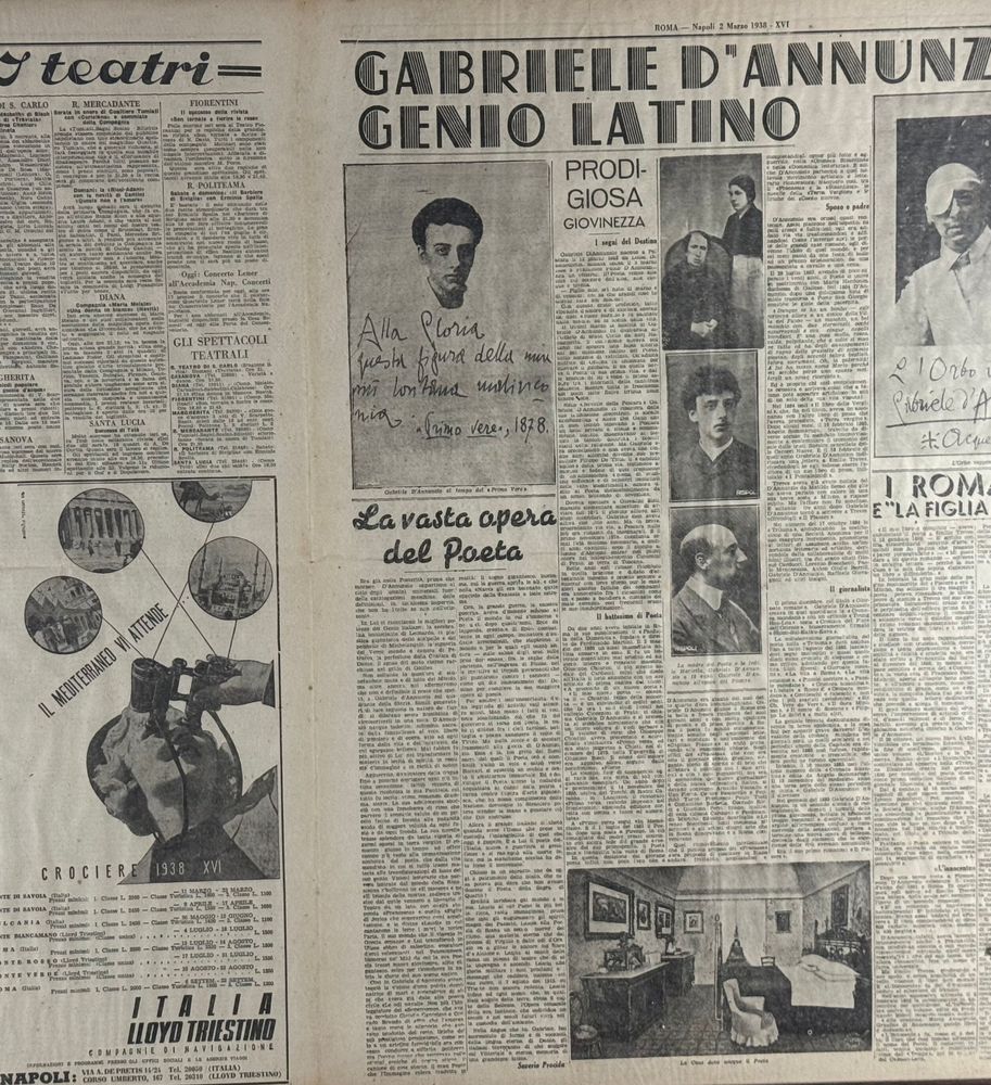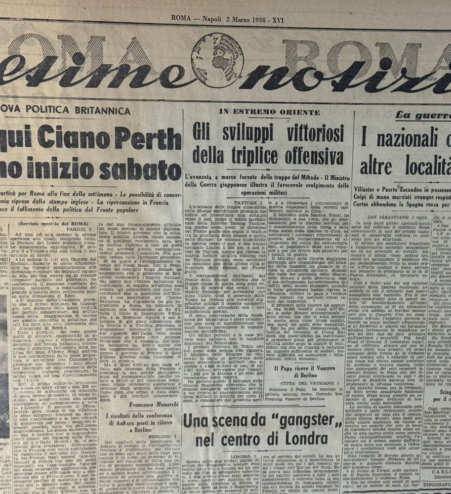 Coppia di pagine di Giornale "Roma", periodo 1938, in riferimento a Gabriele...