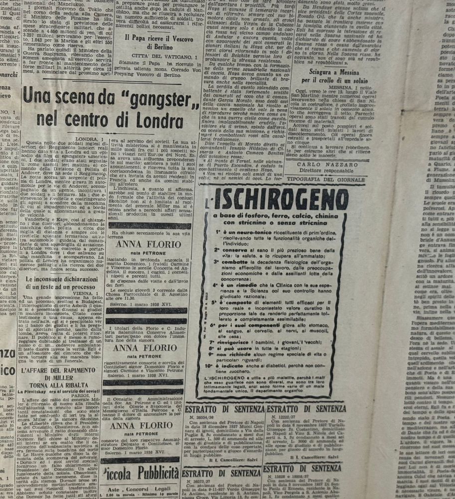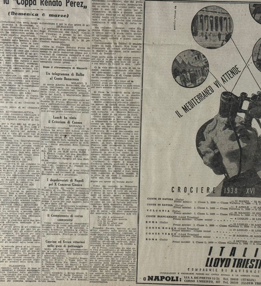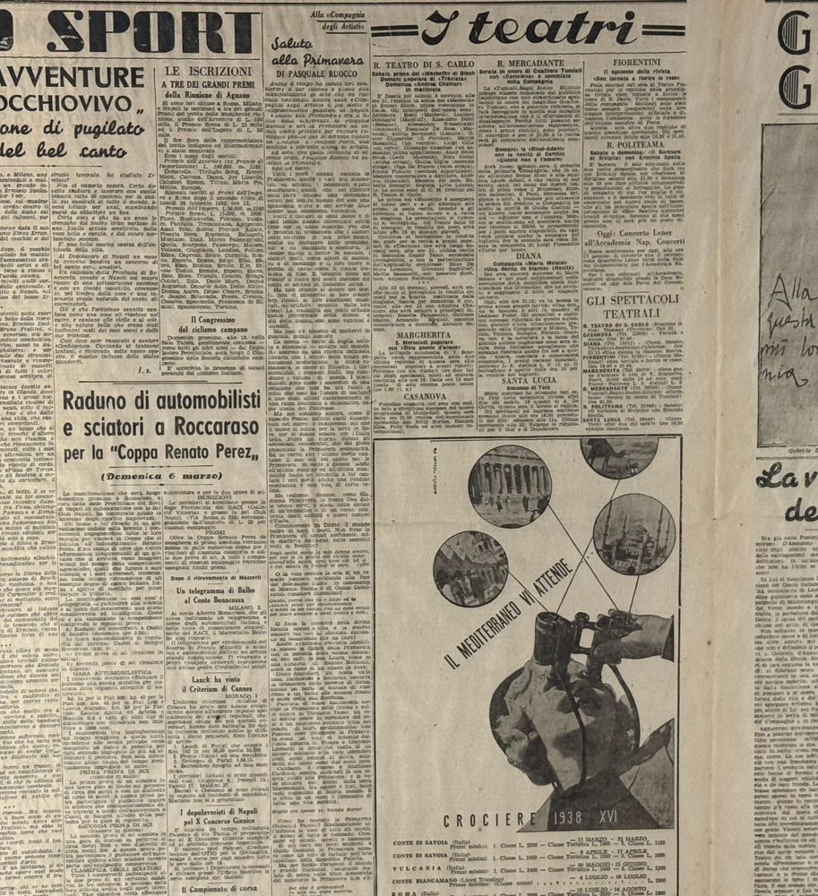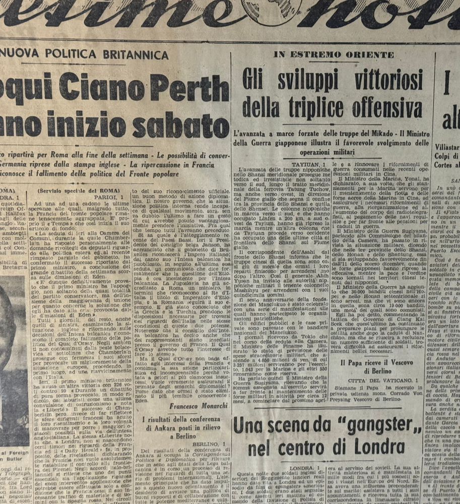 Coppia di pagine di Giornale "Roma", periodo 1938, in riferimento a Gabriele...