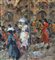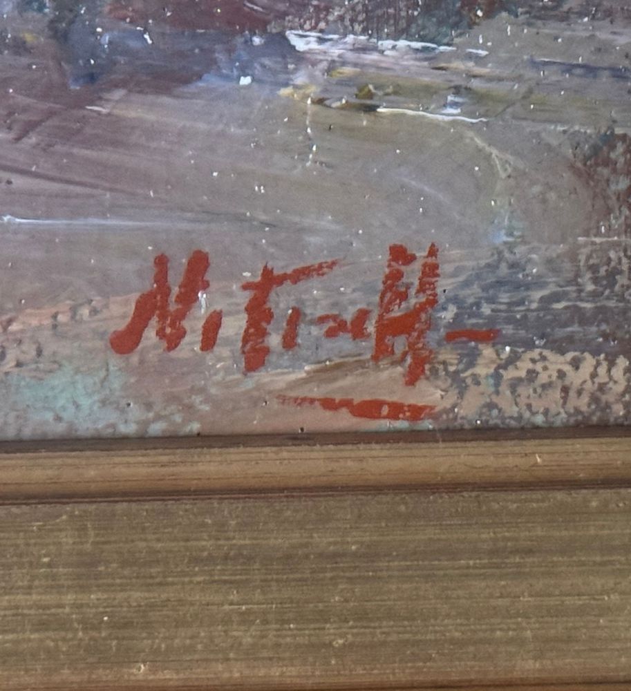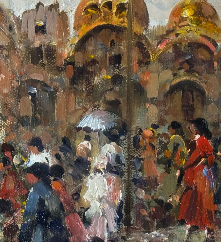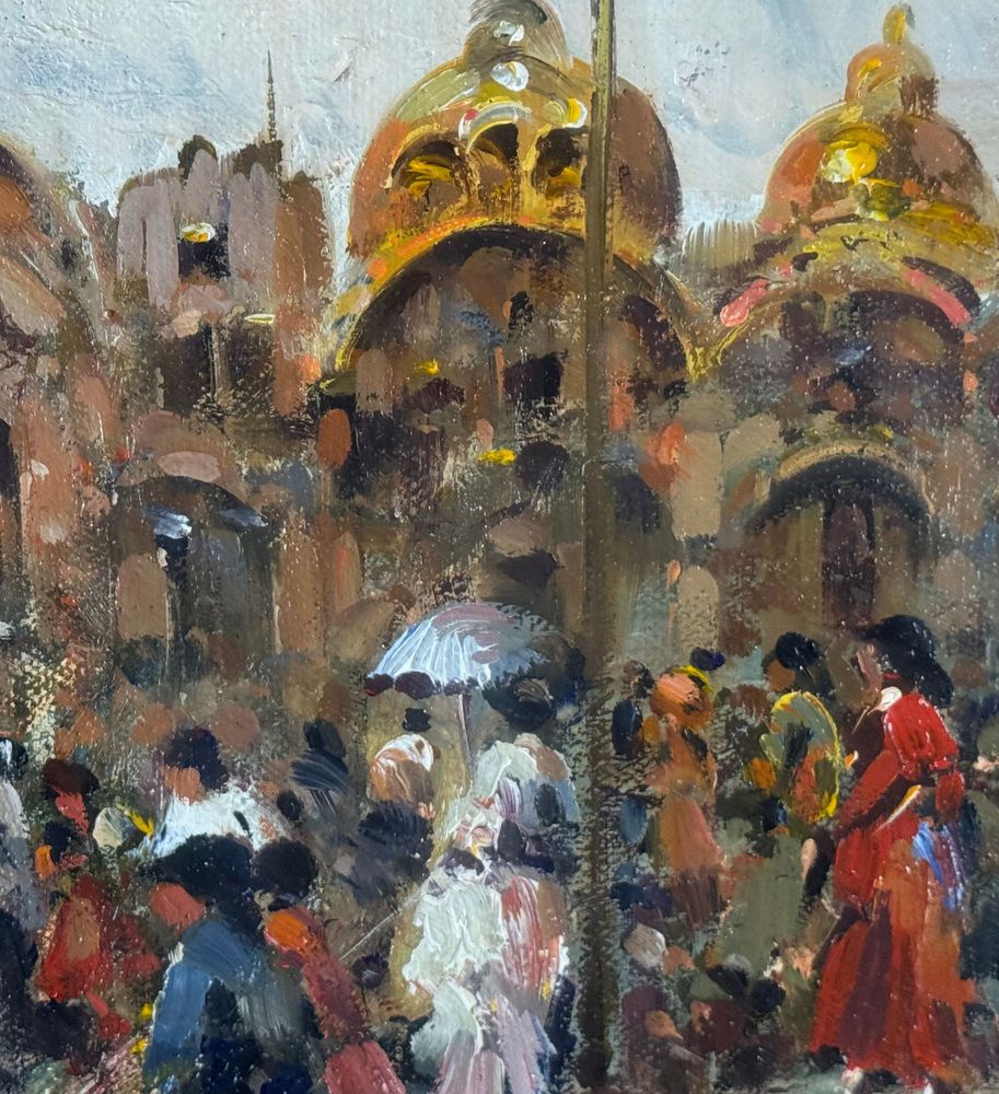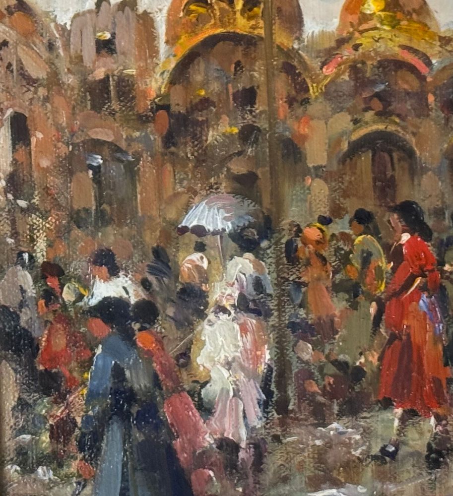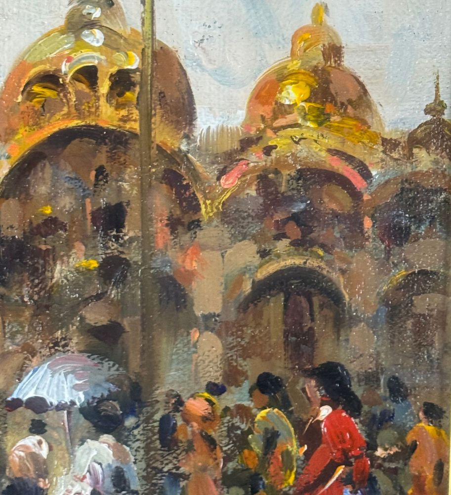 SCUOLA EUROPEA - Dipinto olio su tela, periodo XX secolo, scuola Europea raffigurante Strada con personaggi. Dimensioni compreso cornice: 59x69 cm. Dimensioni interno cornice: 30x40 cm. Firmato in basso a destra artista non identificato. Opera in buone condizioni.