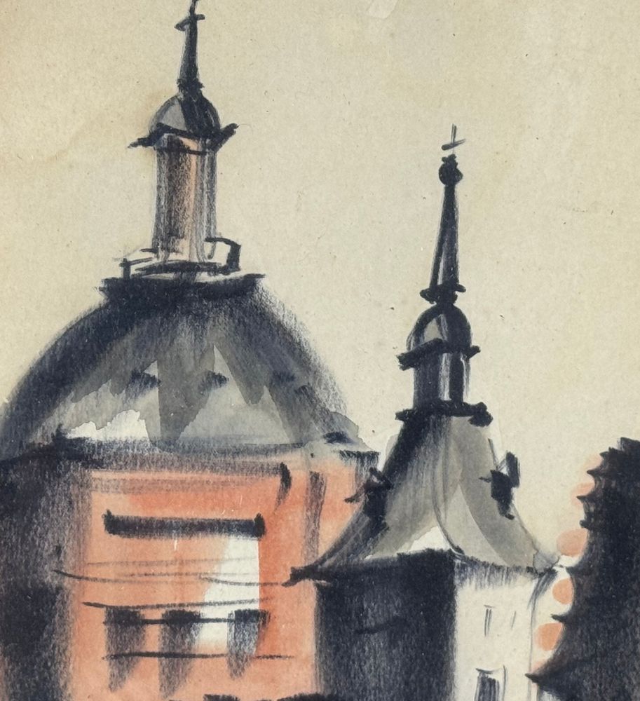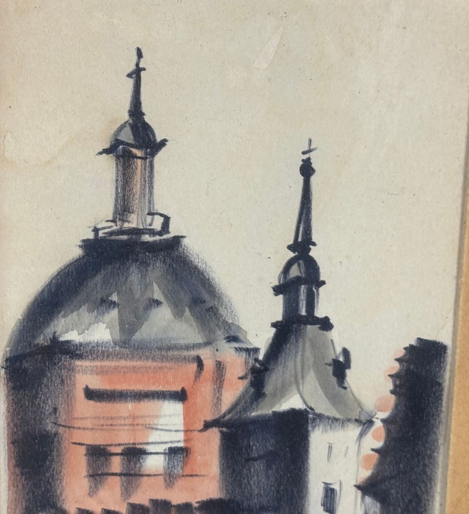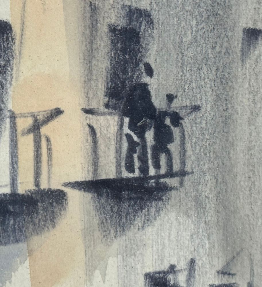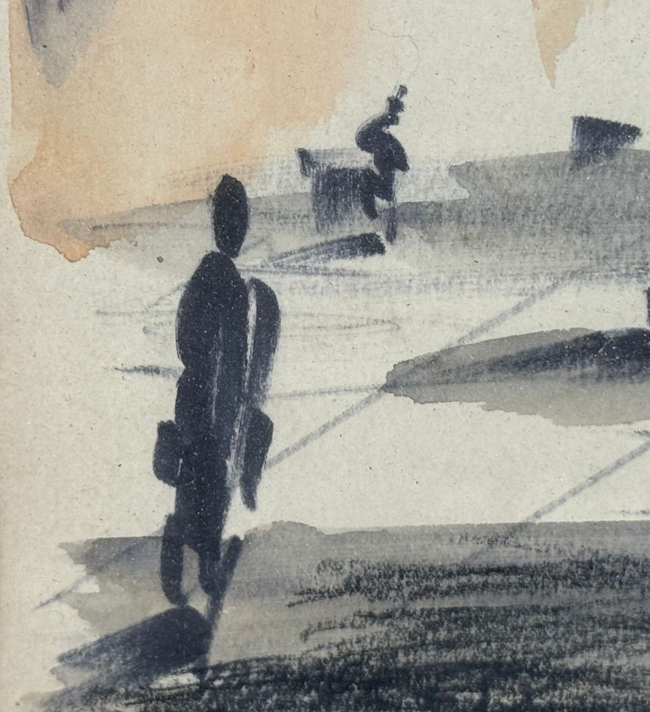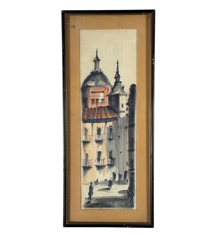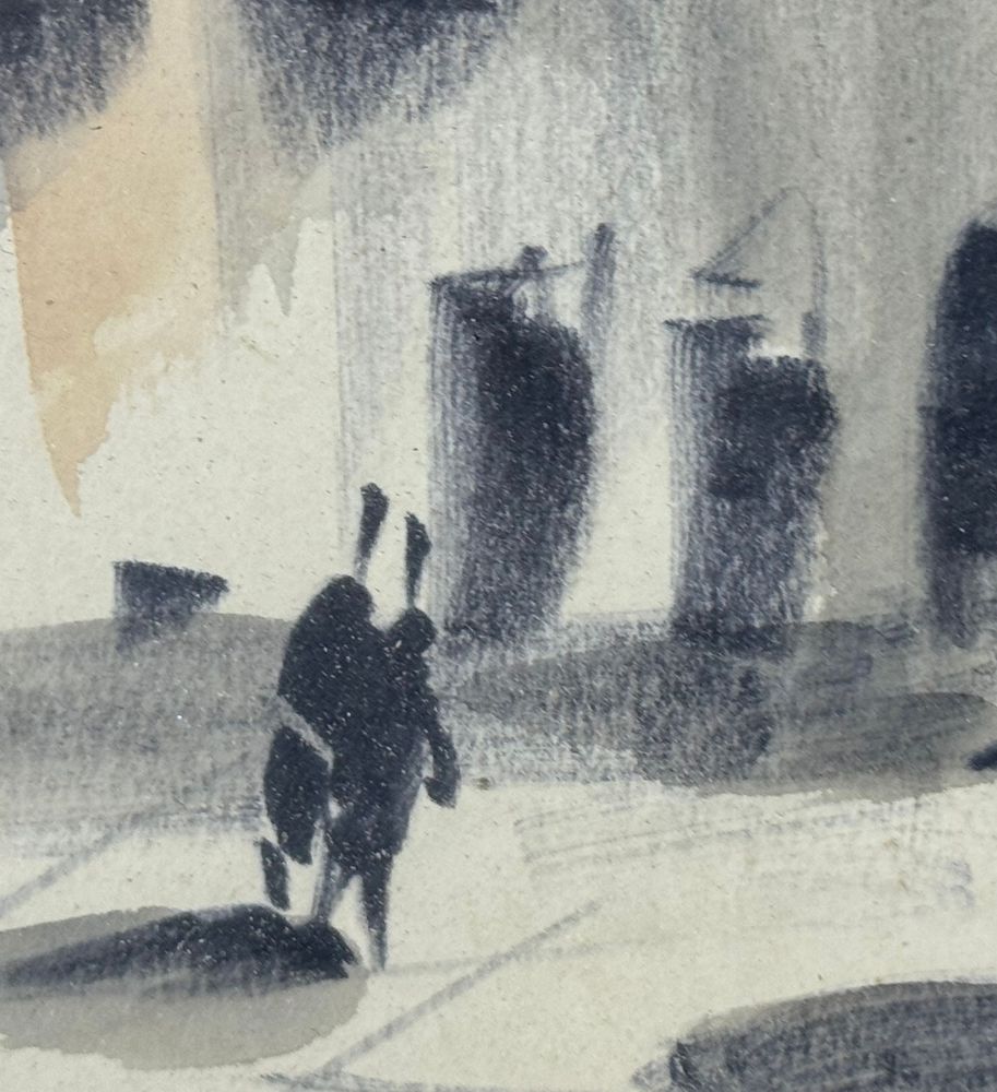 UNIDENTIFIED SIGNATURE - Dipinto acrilico su carta, periodo XX secolo, scuola Italiana raffigurante Stradina con personaggi. Dimensioni compreso cornice: 24x55,5 cm. Dimensioni interno cornice: 15x47 cm. Firmato in basso a destra artista non identificato. Opera in buone condizioni.