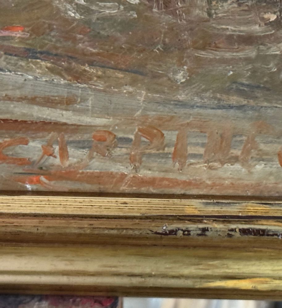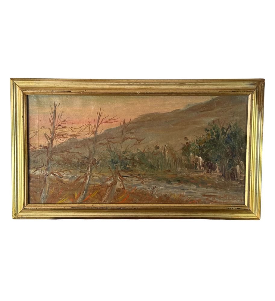 UNIDENTIFIED SIGNATURE - Dipinto olio su tela, periodo XX secolo, scuola Italiana raffigurante Paesaggio. Dimensioni compreso cornice: 69x39 cm. Dimensioni interno cornice: 61x31 cm. Firmato in basso a destra artista non identificato. Opera in buone condizioni.