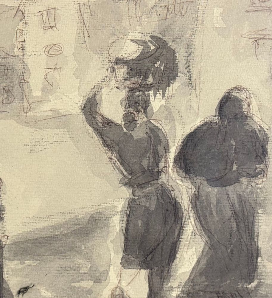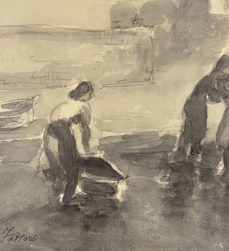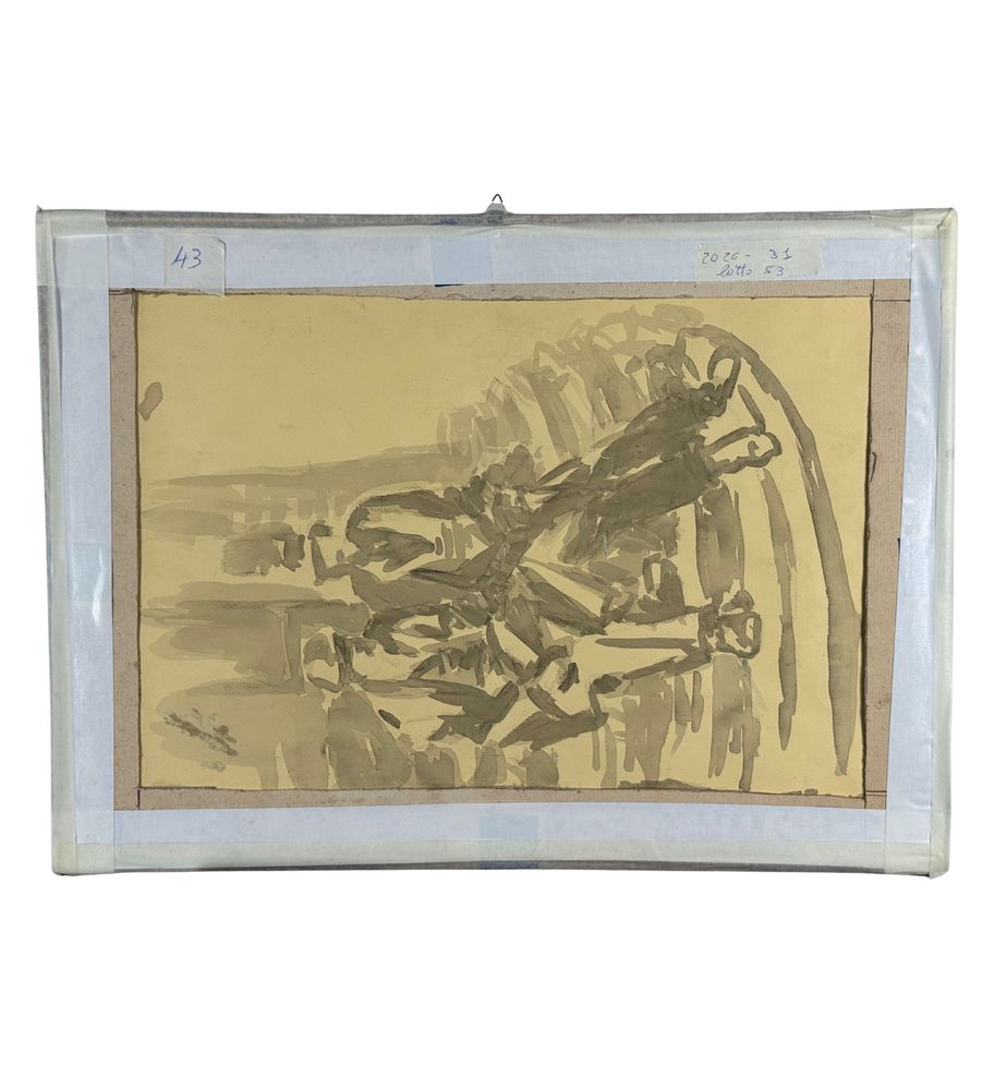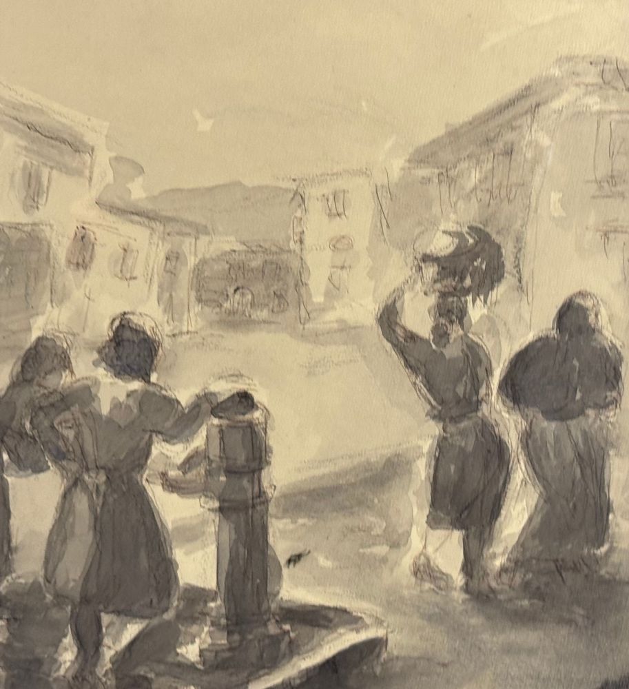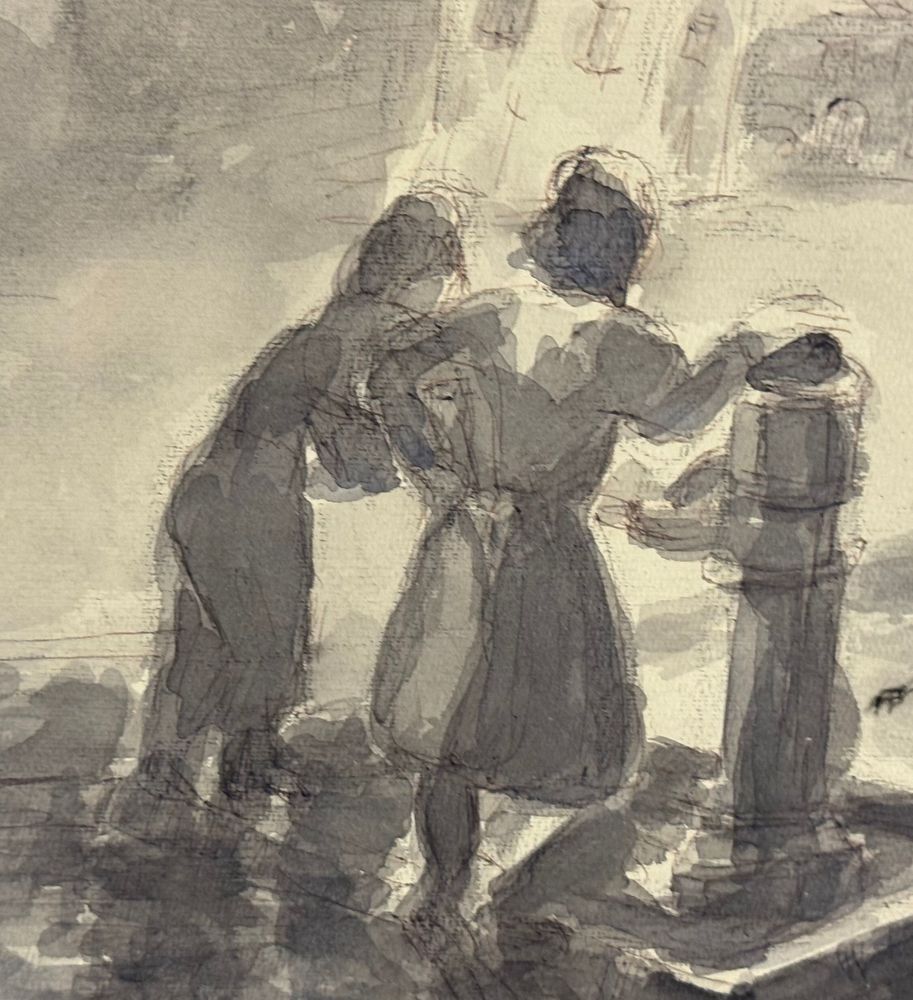 UNIDENTIFIED SIGNATURE - Disegno su carta, periodo XIX/XX secolo, scuola Italiana raffigurante Donne alla fontana. Dimensioni compreso cornice: 58x43 cm. Dimensioni interno cornice: 48x33 cm. Firmato in basso a sinistra artista non identificato. Opera in buone condizioni.