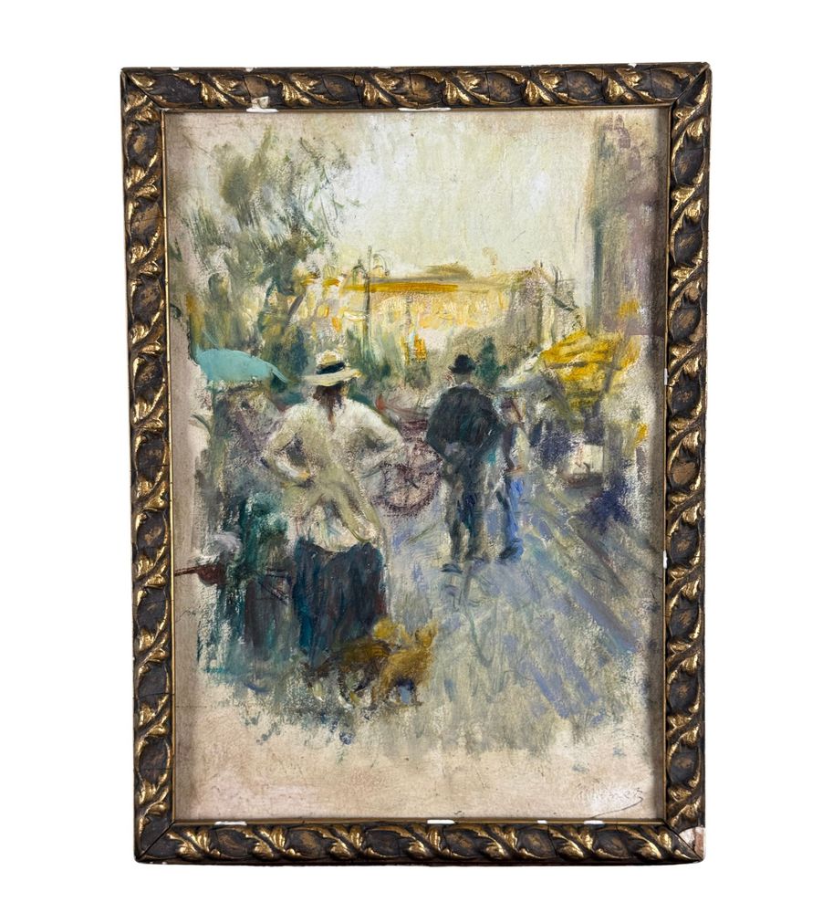 ANONIMO - Dipinto acrilico su carta, periodo XX secolo, scuola Italiana raffigurante Stradina con personaggi. Dimensioni compreso cornice: 27x38 cm. Dimensioni interno cornice: 23x34 cm. Artista anonimo. Opera in buone condizioni con lievi segni di vissuto come da foto allegate.