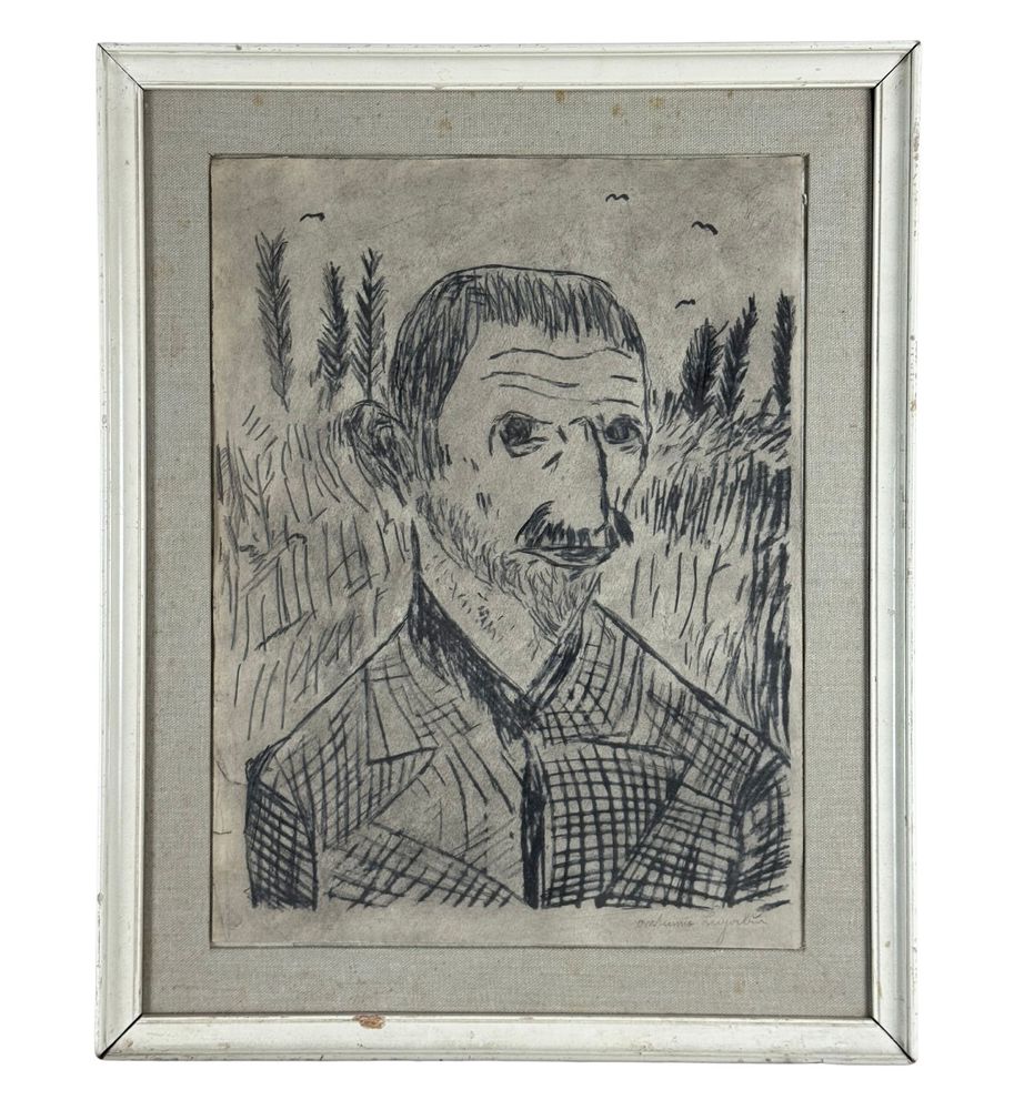 ANONIMO - Disegno su carta, periodo XX secolo, scuola Italiana raffigurante Ritratto di Antonio Ligabue. Dimensioni compreso cornice: 40x50 cm. Dimensioni interno cornice: 30x40 cm. Artista anonimo. Opera in buone condizioni.