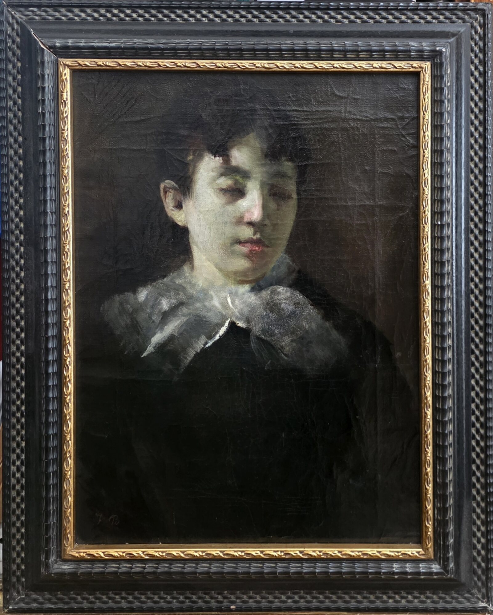 Artista lombardo XIX secolo Ritratto di donna Misure:cm.44 x 61 senza cornice Misure:cm.60 x 78 con cornice Olio su tela Ritratto di donna Artista lombardo XIX secolo Firma in basso a sx F.B. Buone condizioni