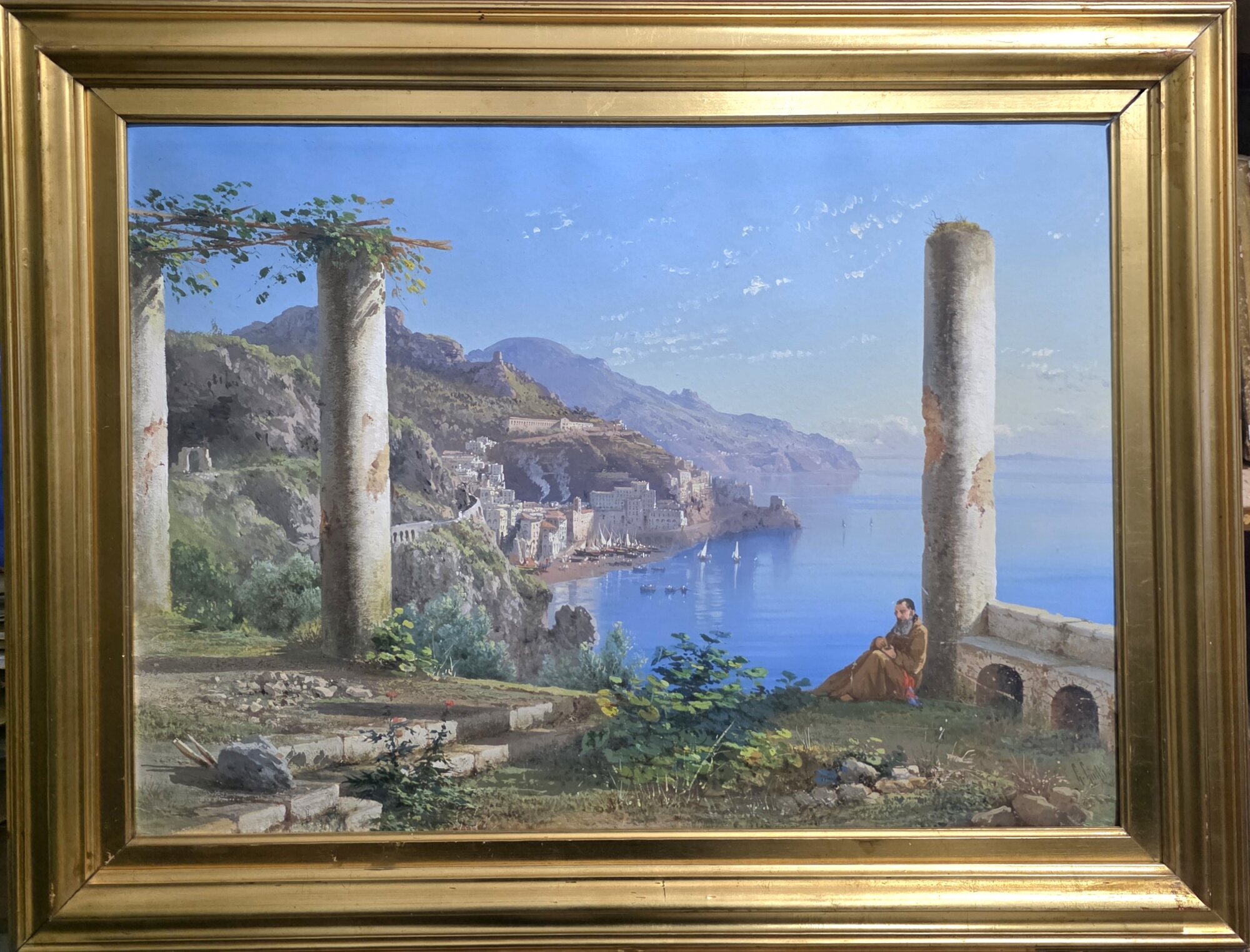 Guglielmo Giusti (Napoli 1824-dopo 1916) Amalfi dal convento dei Cappuccini Misure:cm.60 x 80 senza cornice. Misure:cm.72 x 92 con cornice.Tempera su carta .Amalfi dal convento dei Cappuccini Firma in basso a dx G.Giusti. Spedizione Italia € 45 in ottime condizioni