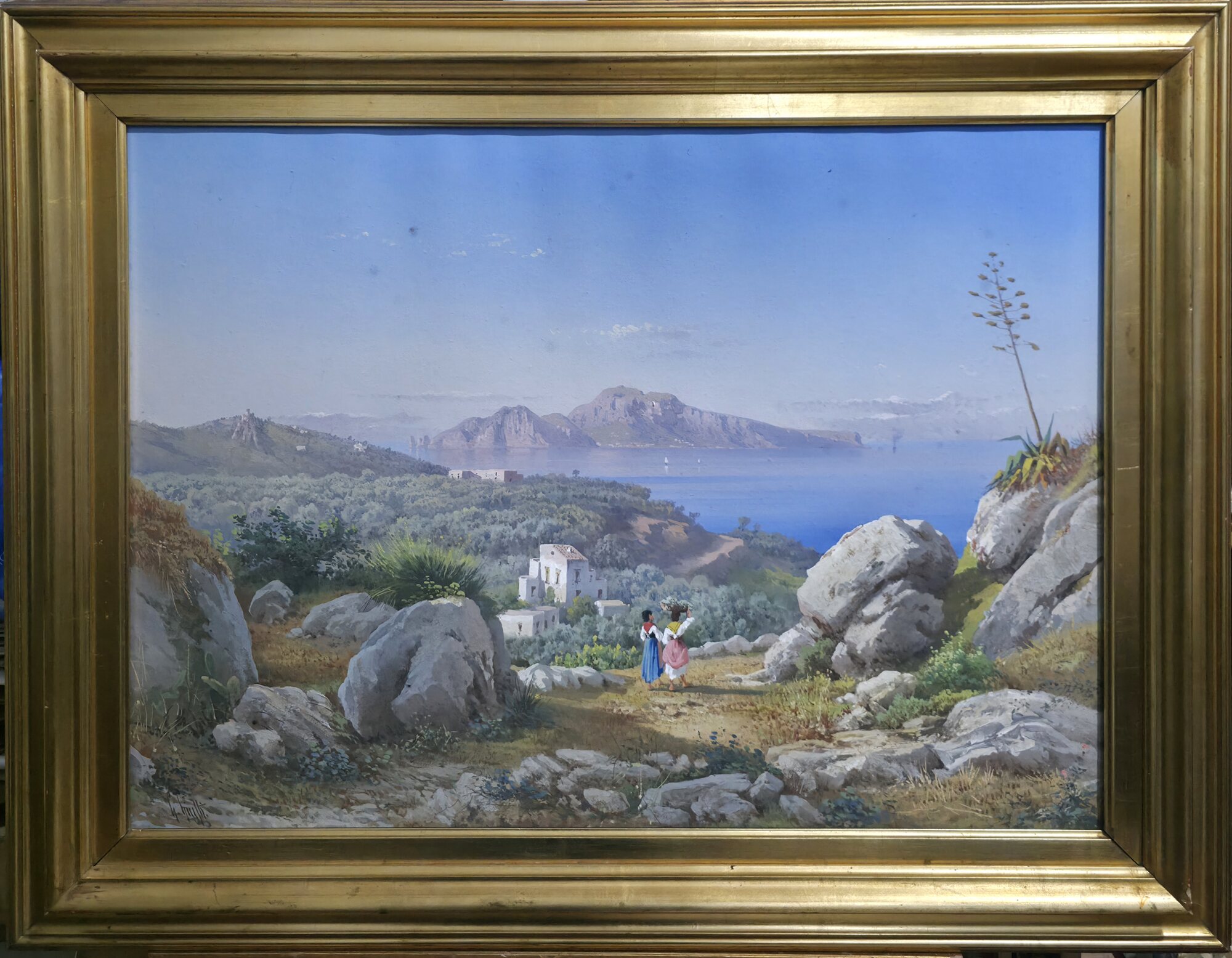 Guglielmo Giusti (Napoli 1824-dopo 1916) Capri vista da Massalubrense Misure:cm.60 x 80 senza cornice. Misure:cm.72 x 92 con cornice.Tempera su carta .Capri vista da Massalubrense. Firma in basso a dx G.Giusti. Spedizione Italia € 45 in ottime condizioni