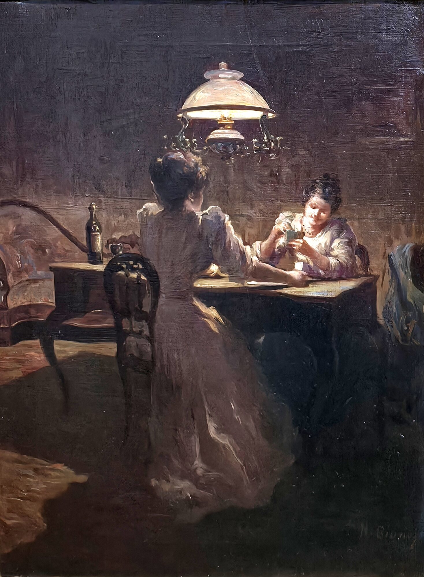 Nicola Biondi (Capua1866 – Napoli 1929) Gioco a carte Misure:30 x 40 senza cornice. Misure:cm.55 x 65 con cornice. Olio su tela. Gioco a carte. Firma in basso a dx N.Biondi. Spedizione Italia € 35 Buone condizioni