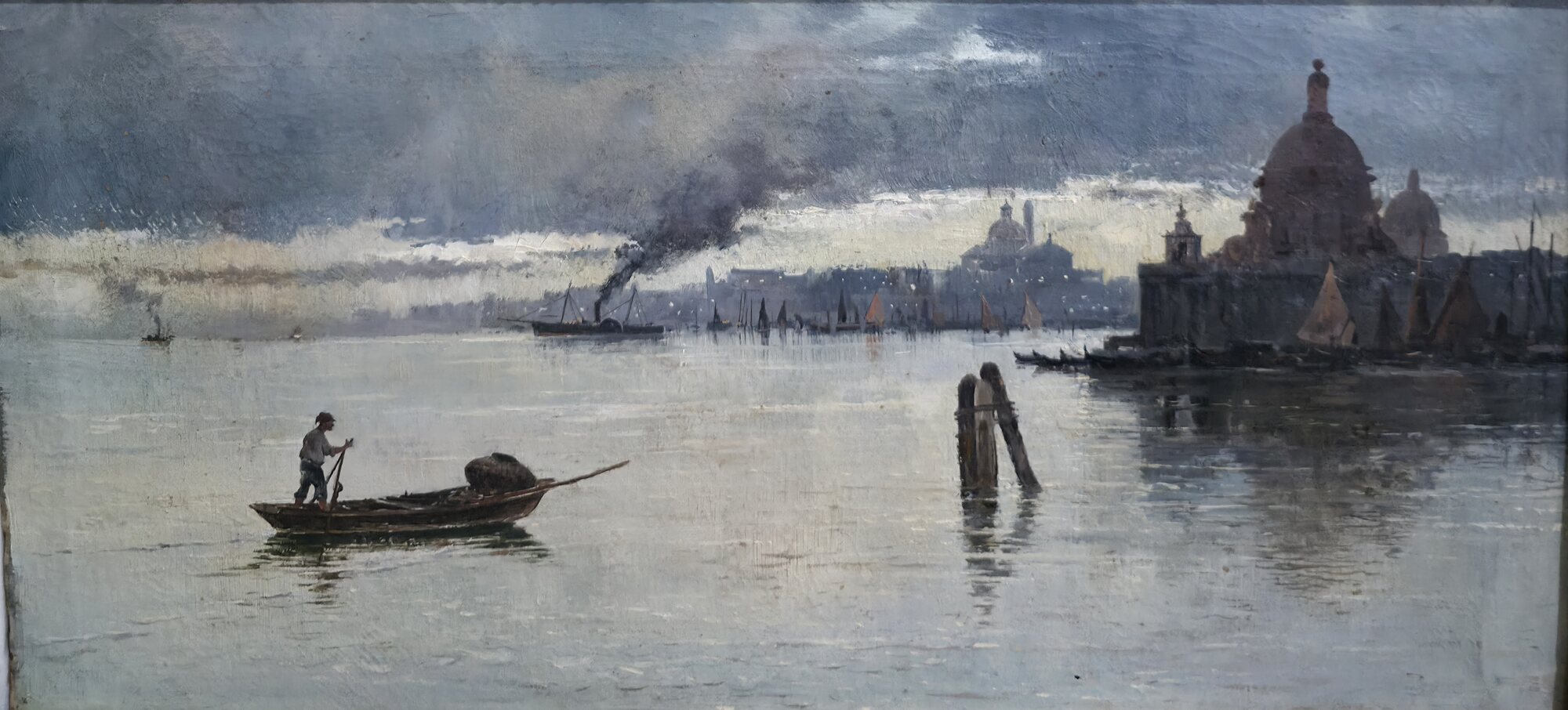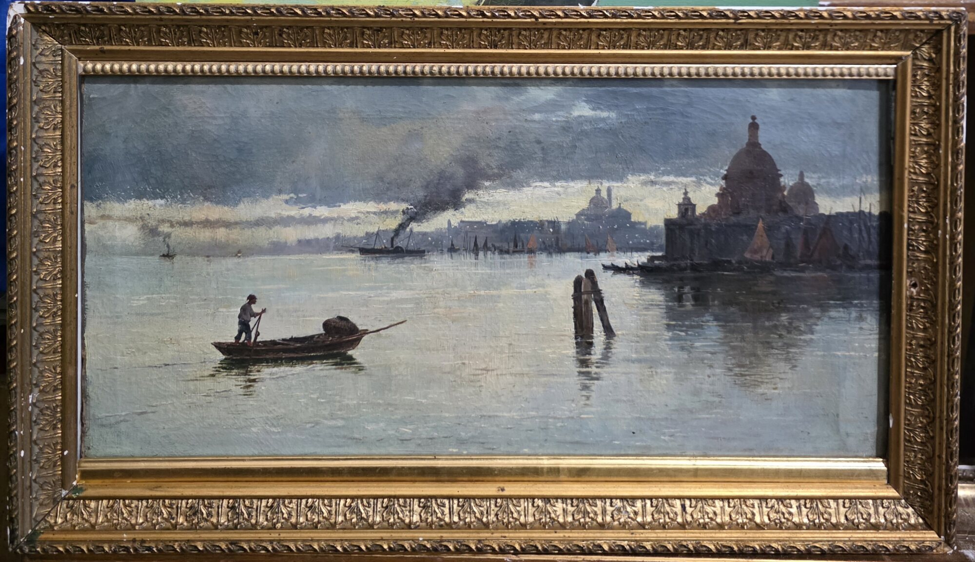 Misure: cm.31 x 52 con cornice. Olio su tela.